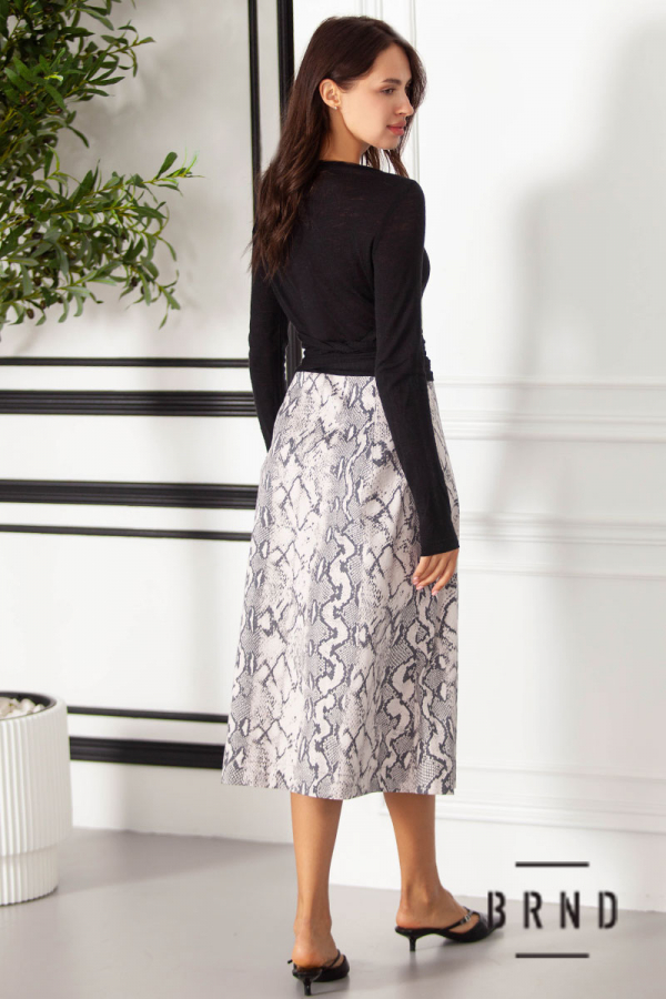 Сукня з відрізною лінією талії та паском, комбінована з трикотажем (AniNadin)