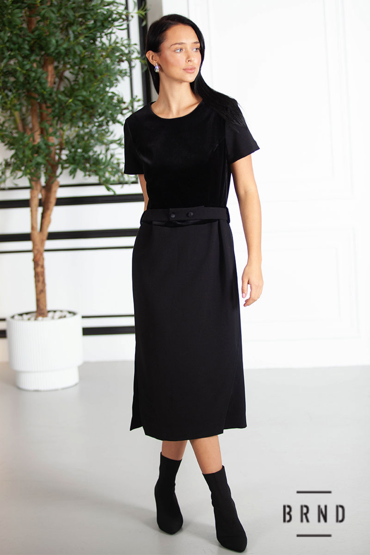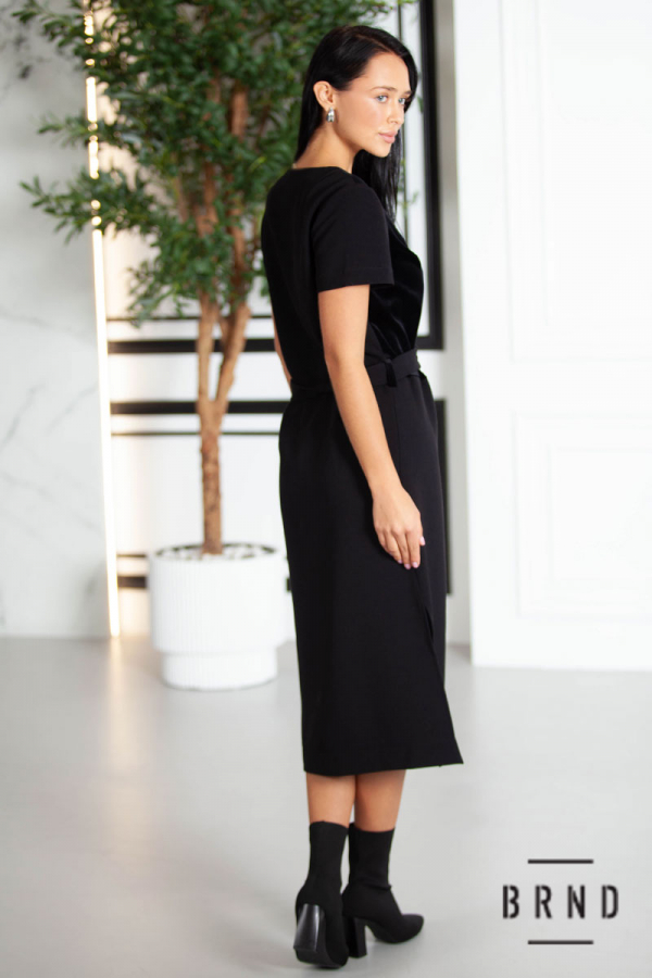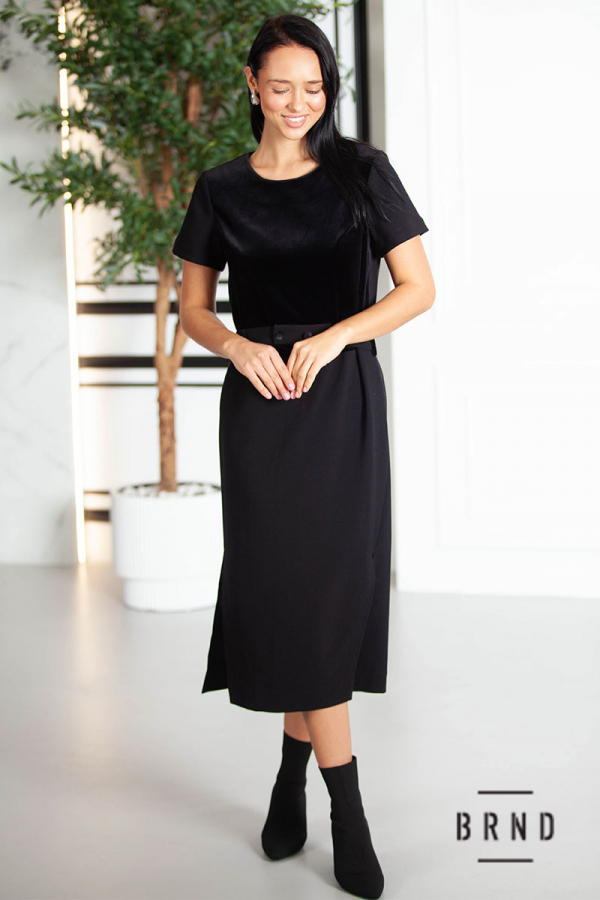 Сукня з відрізною лінією талії та паском, комбінована з оксамитом (AniNadin)