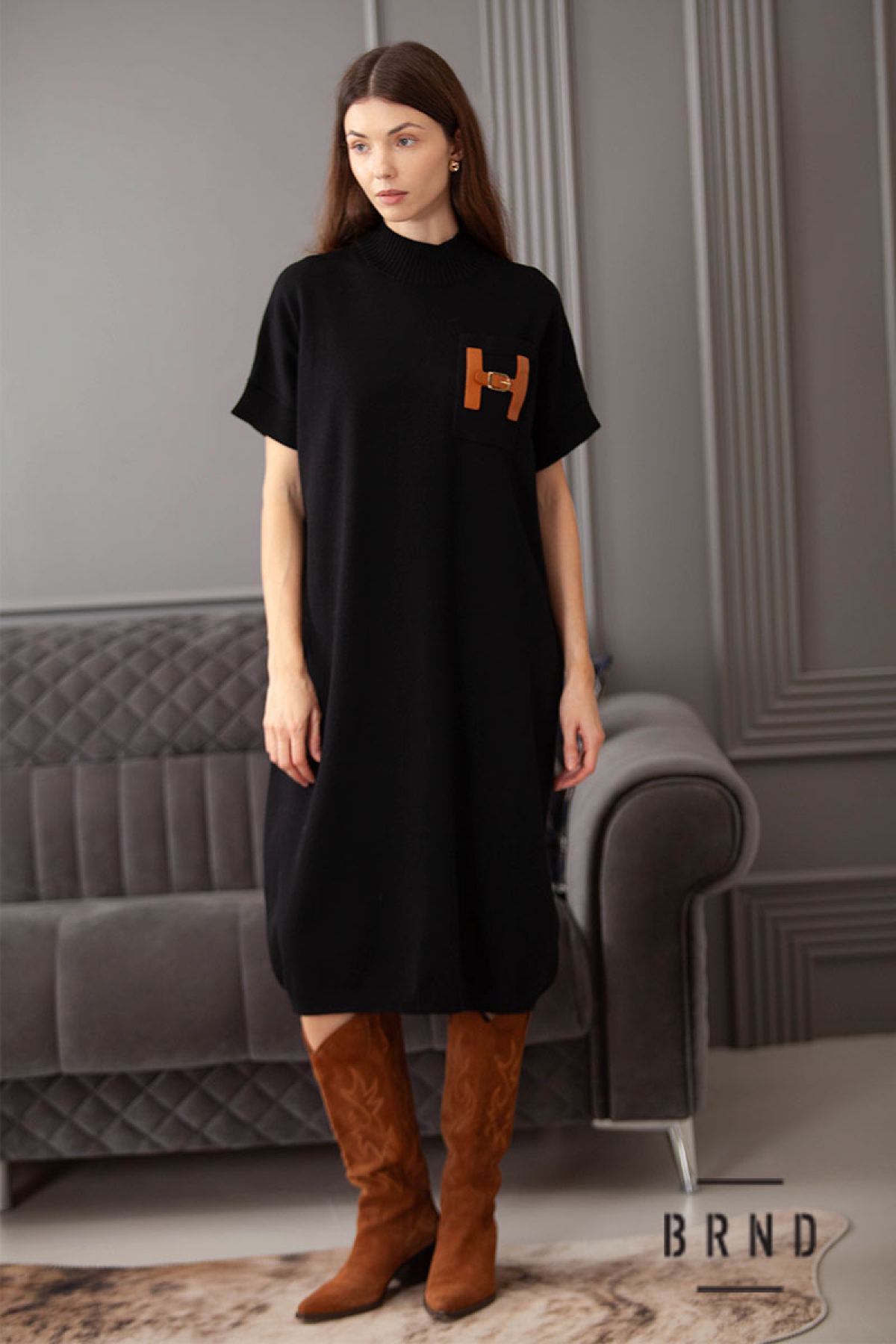 Сукня трикотажна вільного крою, комір-стійка, рукава короткі (AniNadin)