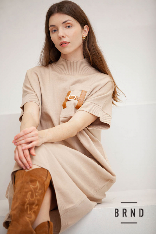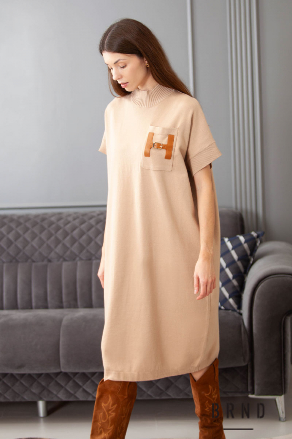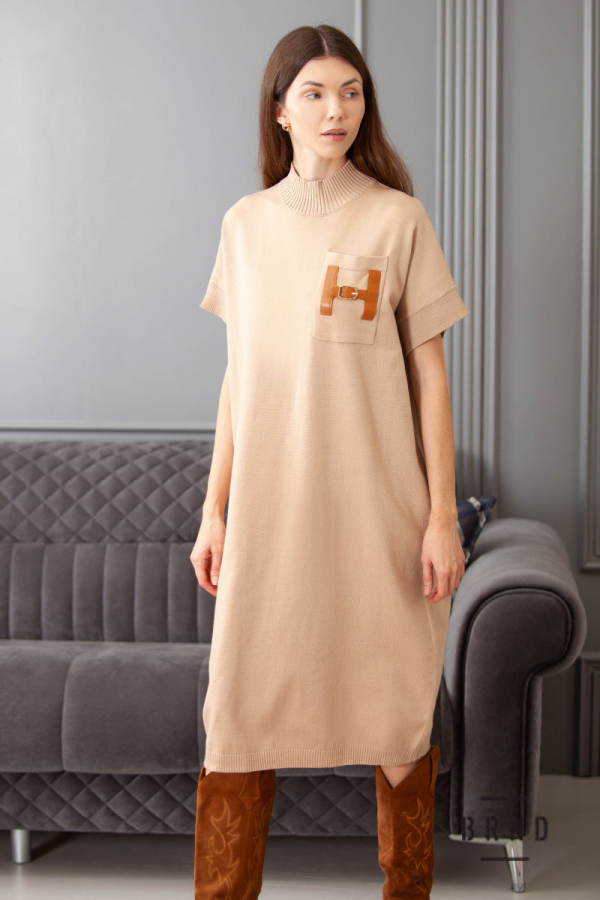 Сукня трикотажна вільного крою, комір-стійка, рукава короткі (AniNadin)