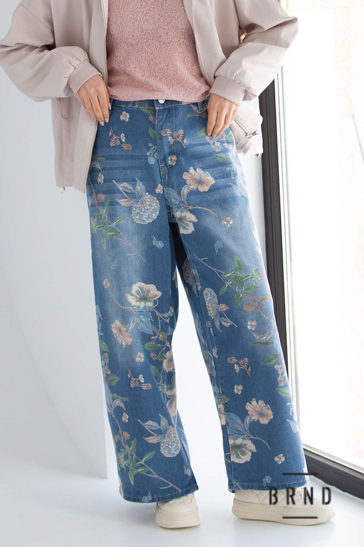 Джинси з квітковим принтом, укорочені, прямі, широкі, посадка висока (AniNadin)