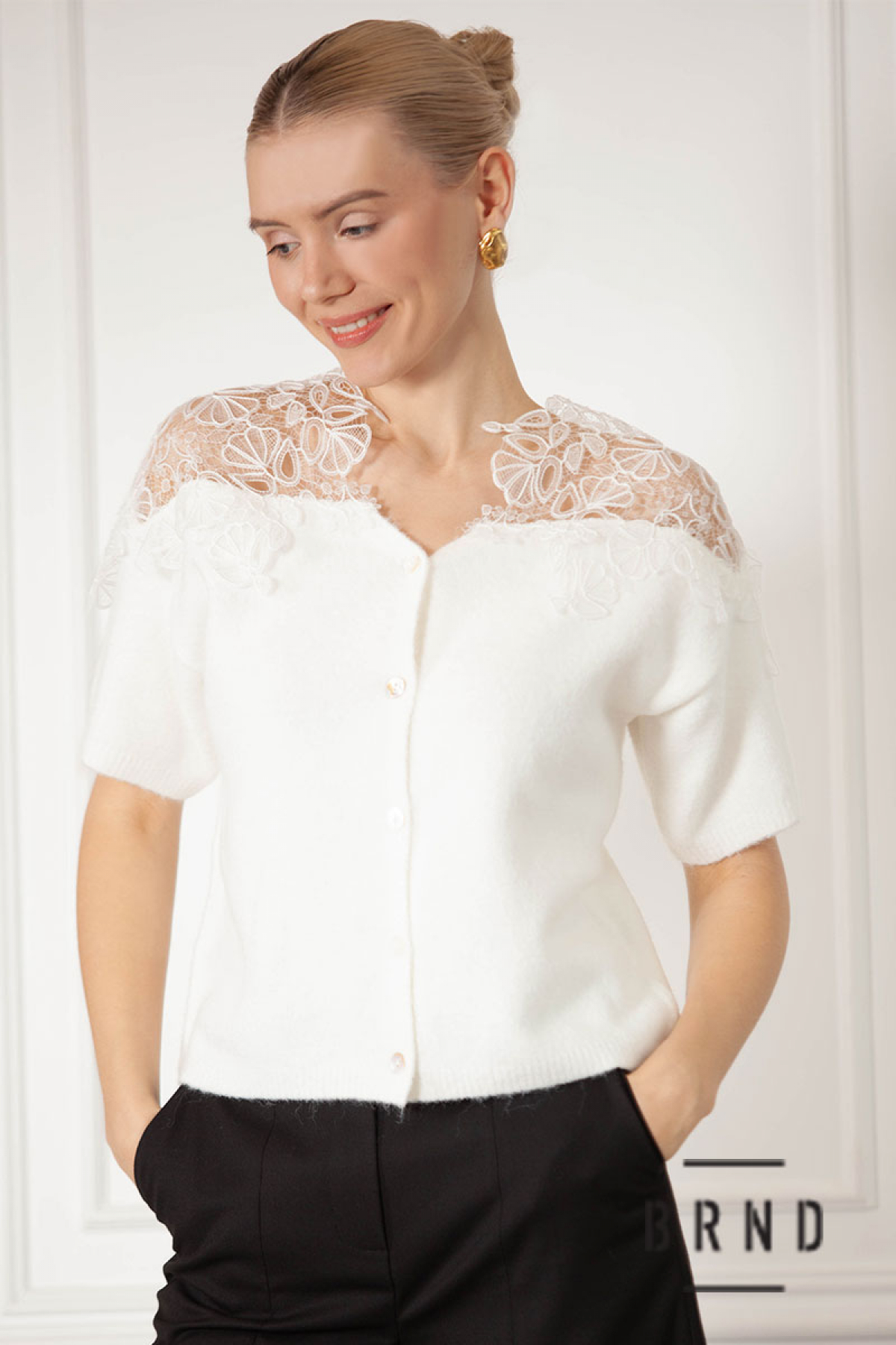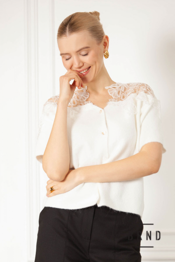 Кофта трикотажна на ґудзиках; комбінована з мереживом; рукава короткі, крій вільний; виріз V-подібний (AniNadin)
