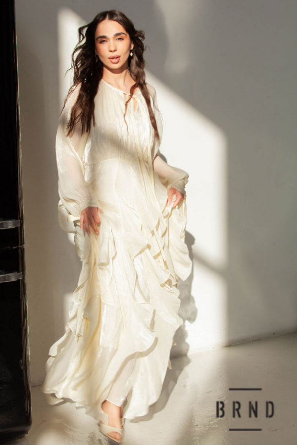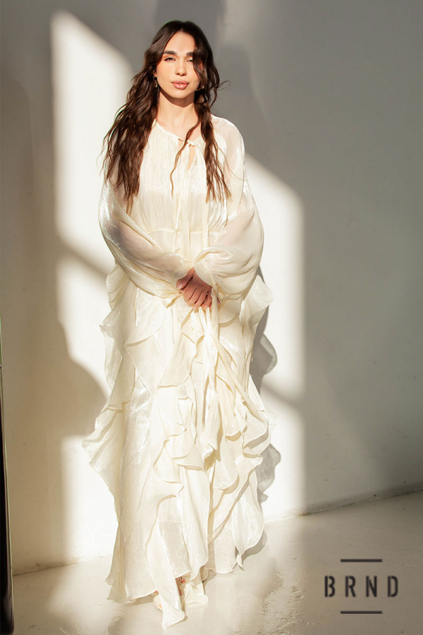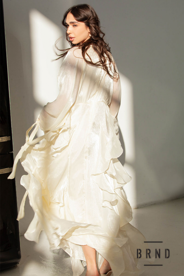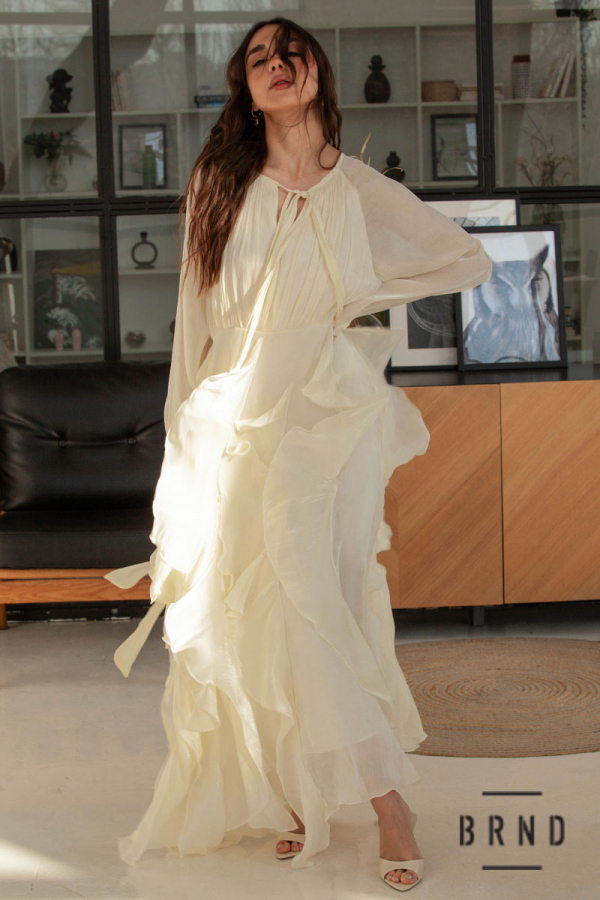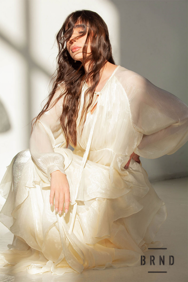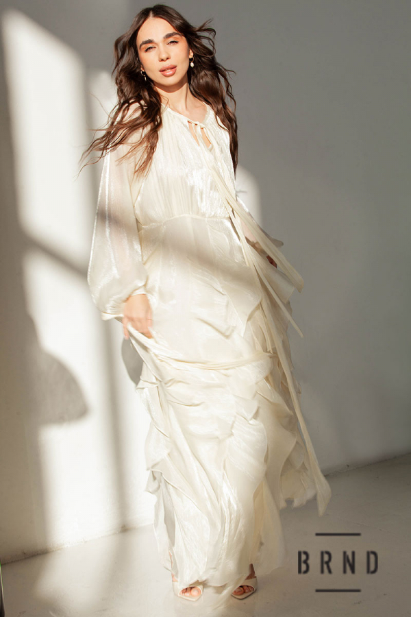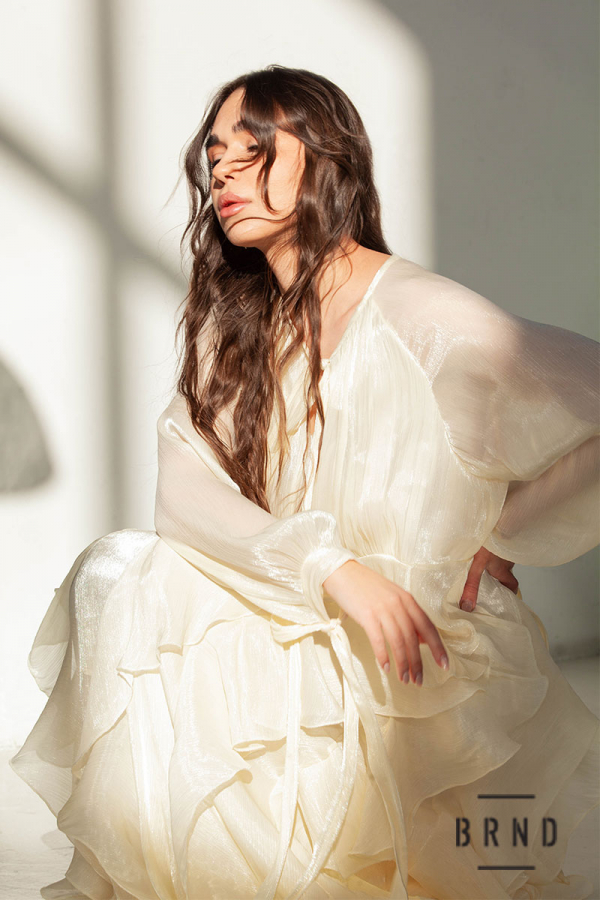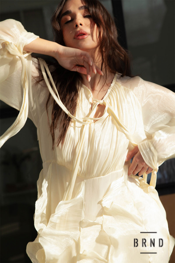 Сукня з відрізною лінією талії та паском, рукав-буф, декор-рюші (AniNadin)