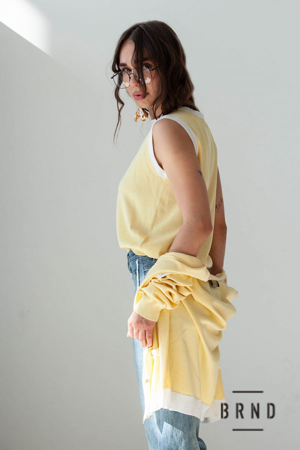 Комплект-двійка: трикотажна кофта прямого крою, на ґудзиках; майка прямого крою (AniNadin)