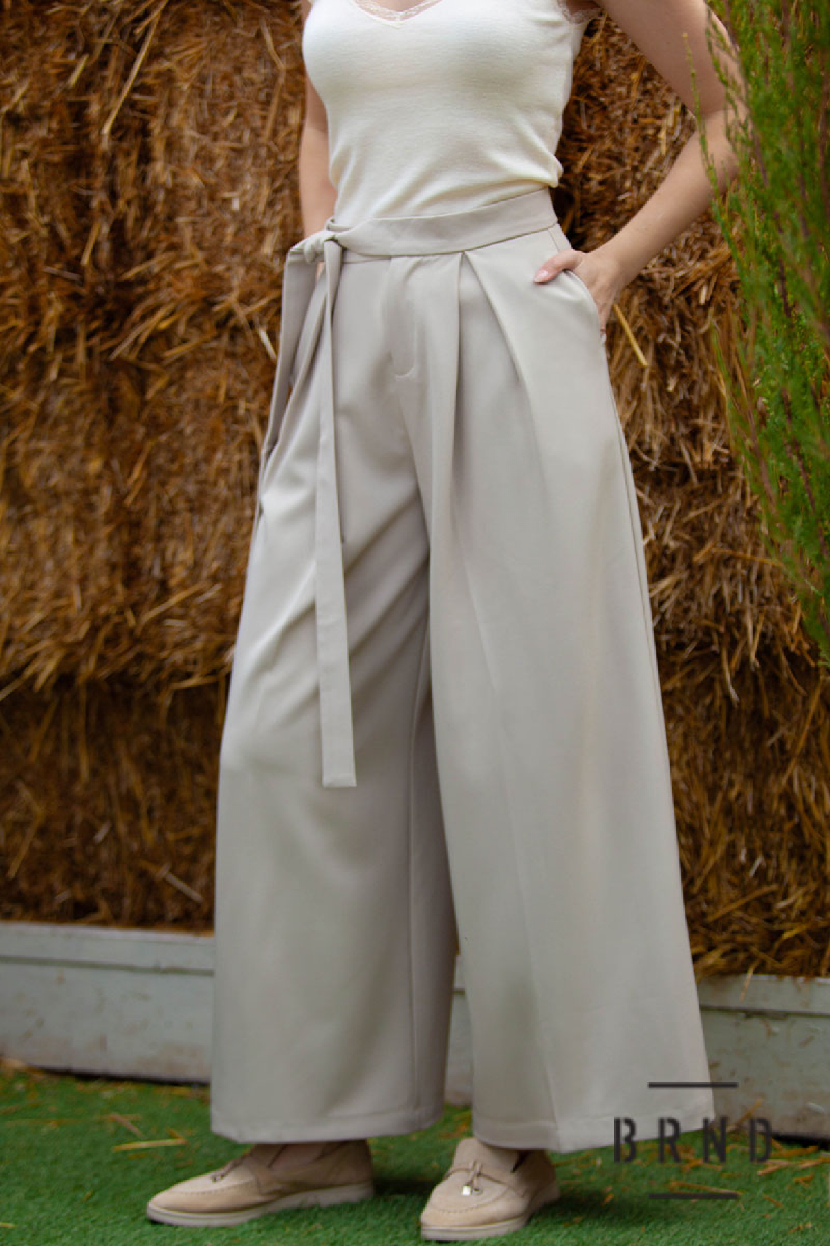 Штани-палаццо з косими кишенями та текстильним паском, посадка висока (AniNadin)