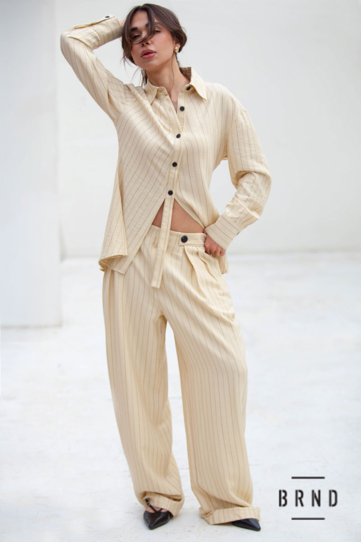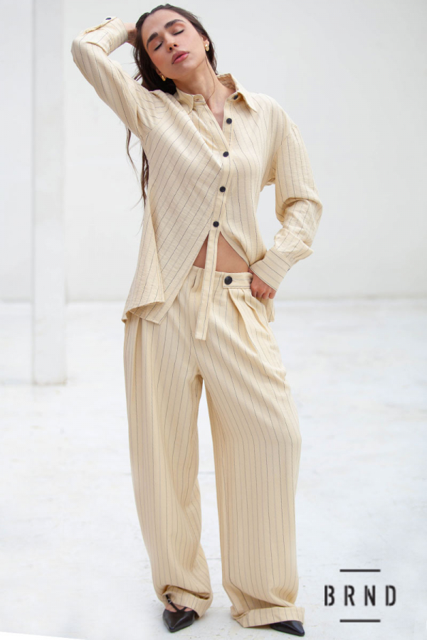 Костюм: сорочка приталеного крою; штани-палаццо, пасок комбінований з гумовою стрічкою, посадка висока (AniNadin)