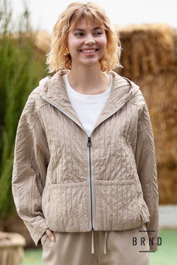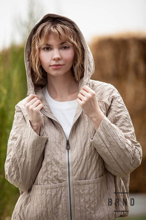 Куртка із жатої тканини, вільного крою, з каптуром та кишенями, на блискавці (AniNadin)
