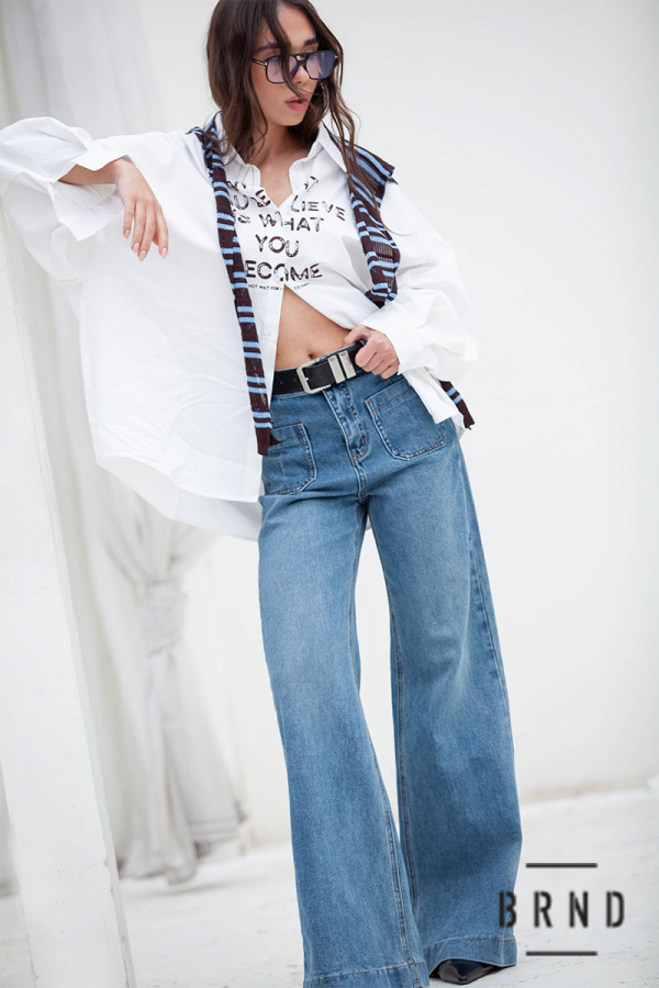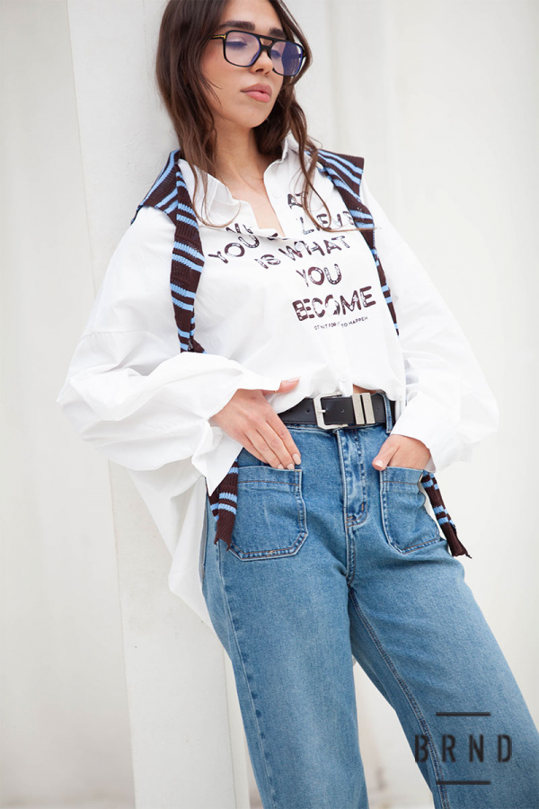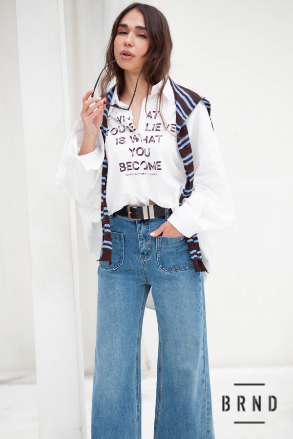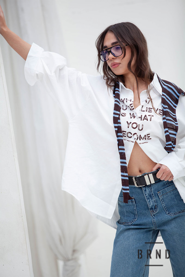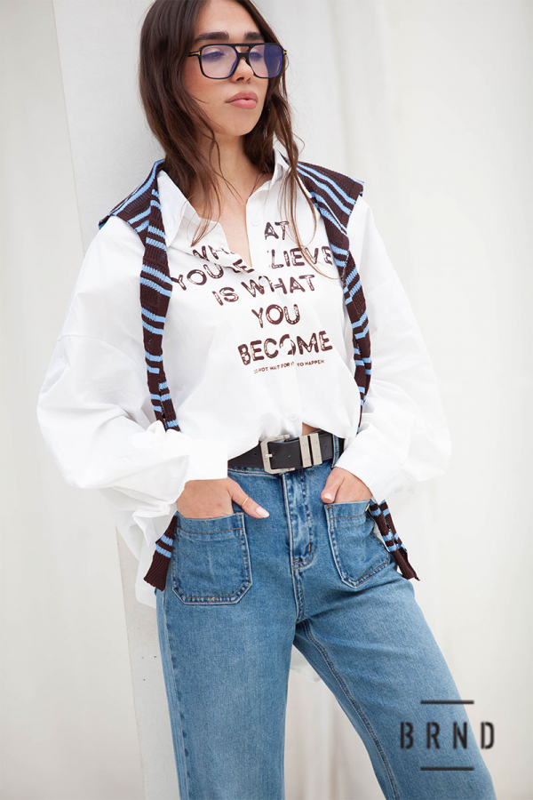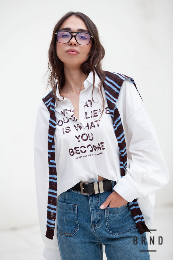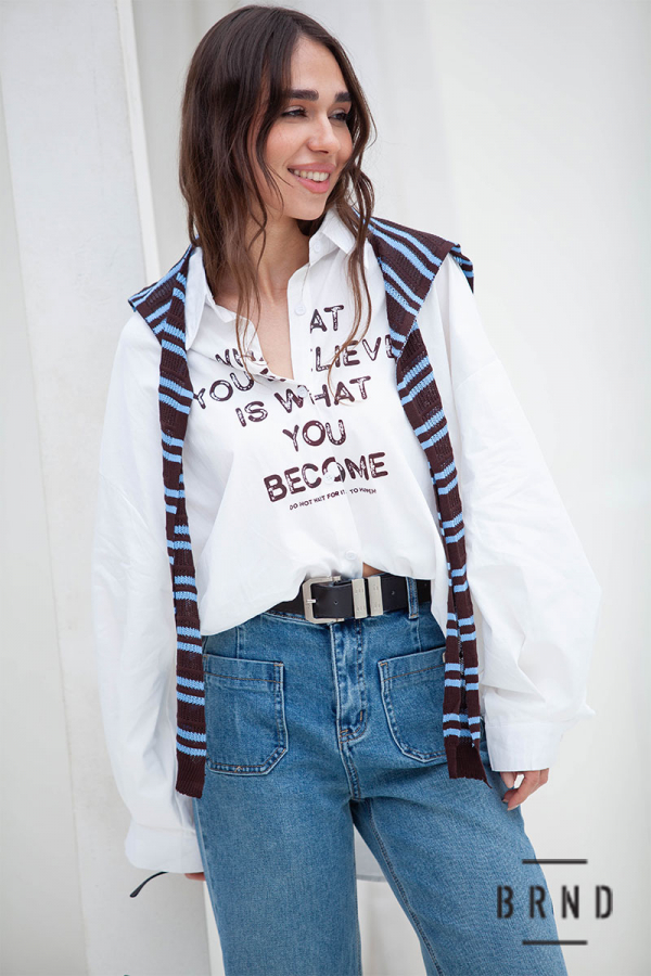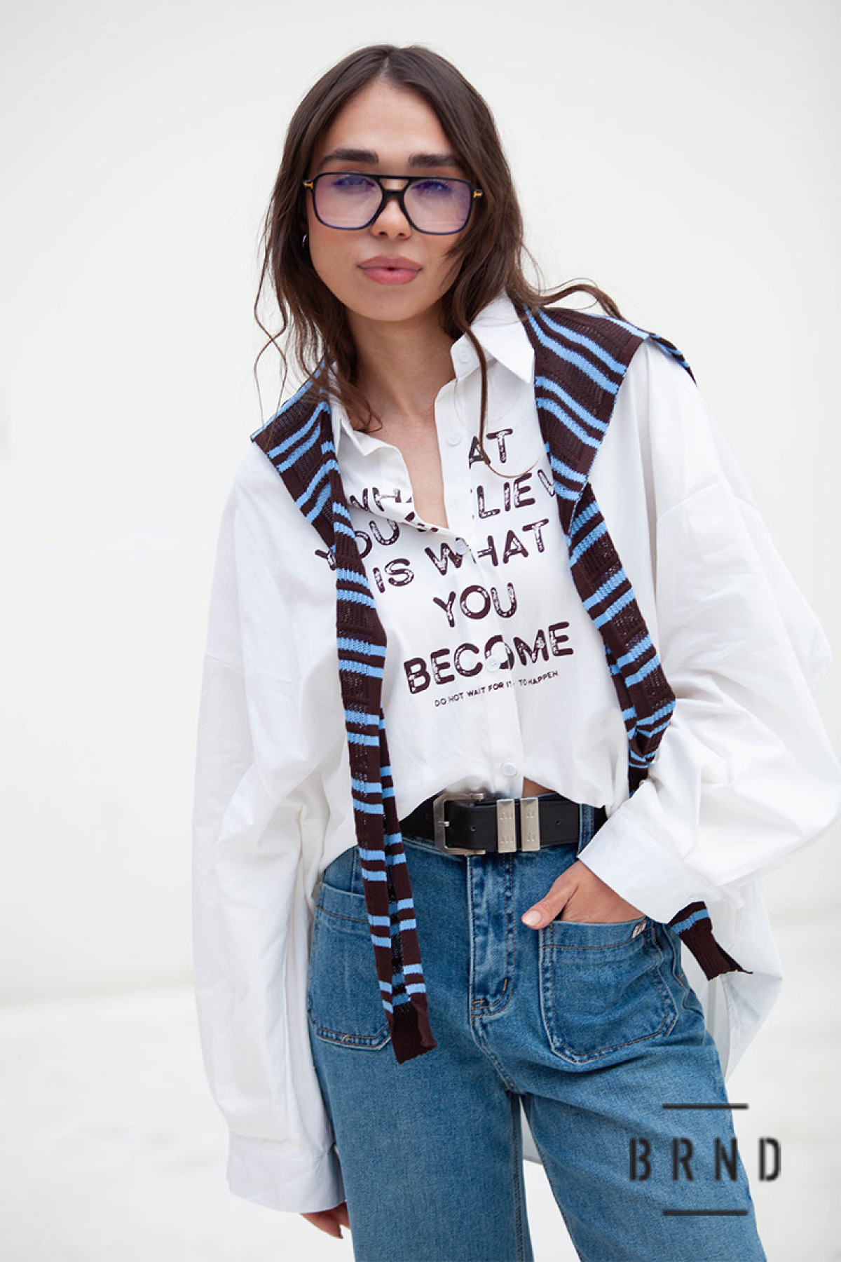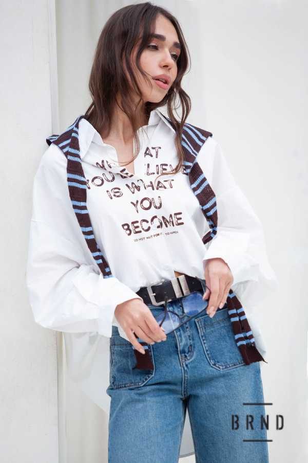 Сорочка вільного крою з принтом та декоративним трикотажним елементом (AniNadin)