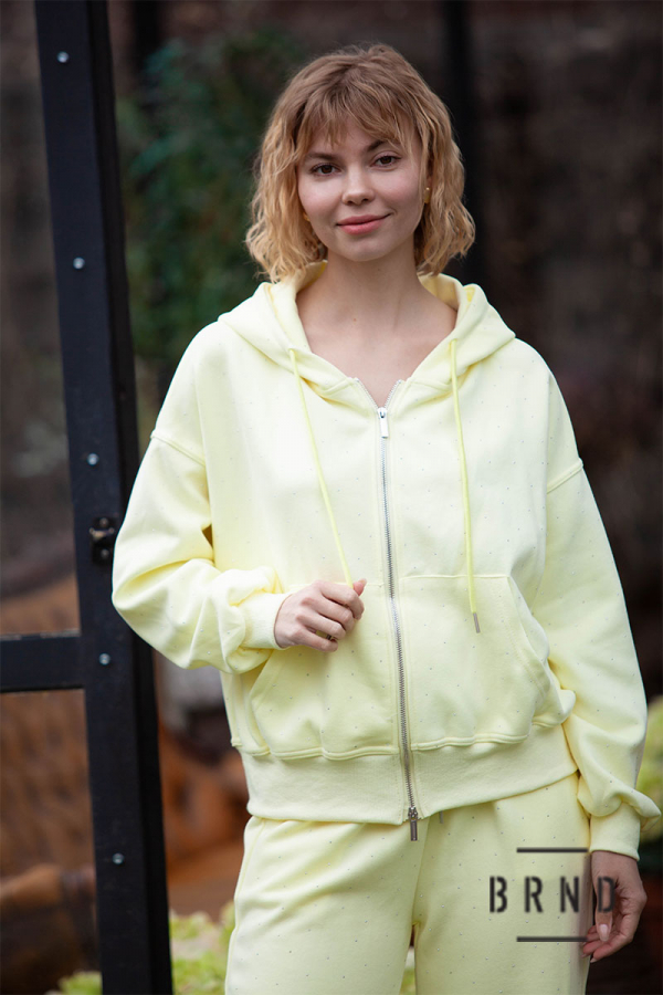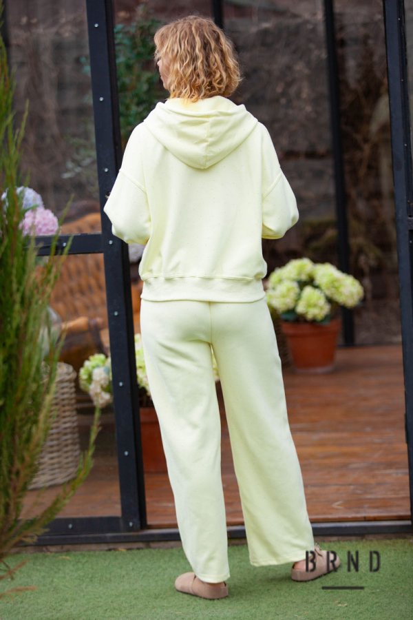 Костюм: кофта вільного крою з каптуром, кишенями, на блискавці, декор-стрази; штани прямого крою, пасок-гумова стрічка та шнур, посадка висока, декор-стрази (AniNadin)