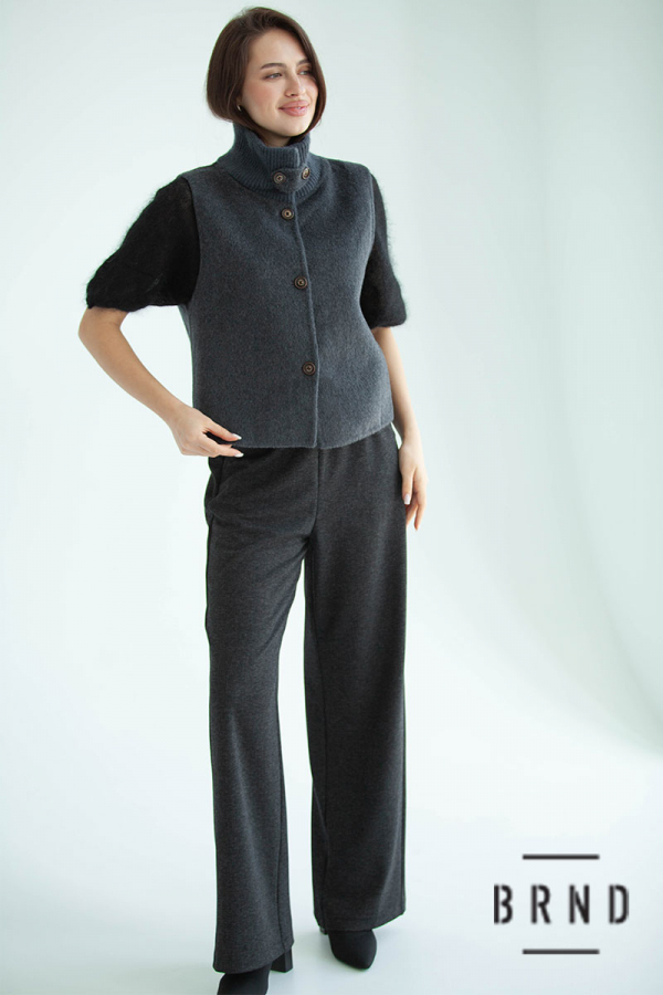 Комплект-двійка: пальто прямого крою, без підкладки та жилето прямого крою, на ґудзиках, з трикотажним коміром (Armani Jeans)