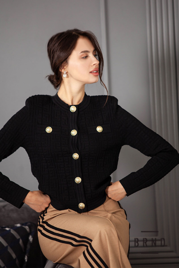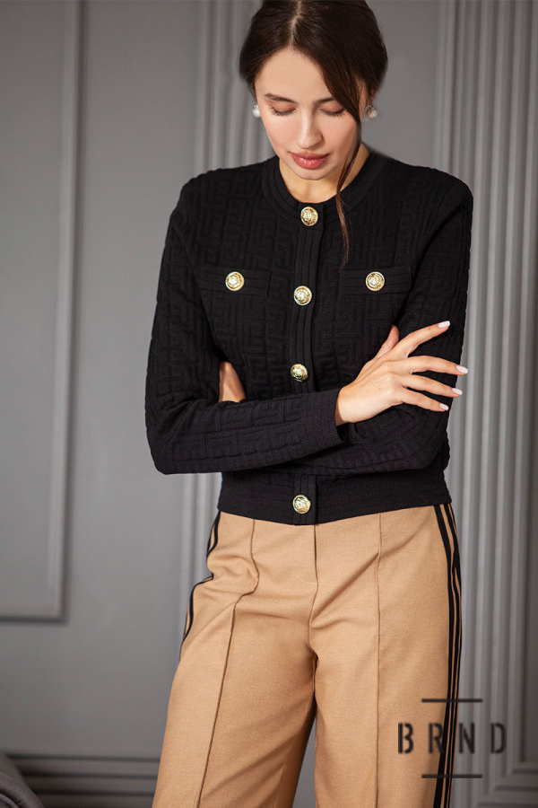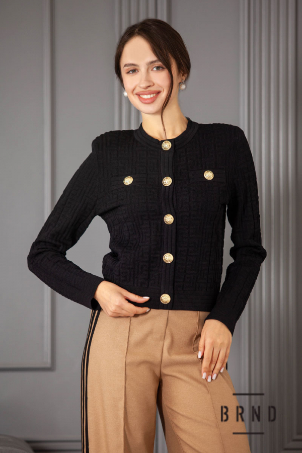 Жакет приталеного кроя, зі структурованого трикотажу, укорочений, на кнопках (Balmain)