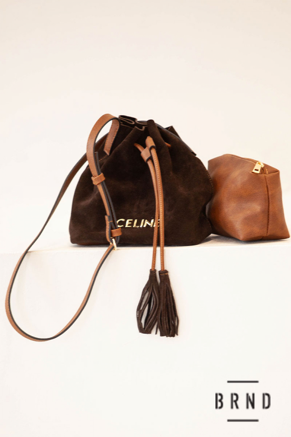 Сумка-мішок з ручкою та косметичкою з екошкіри на блискавці (Celine)