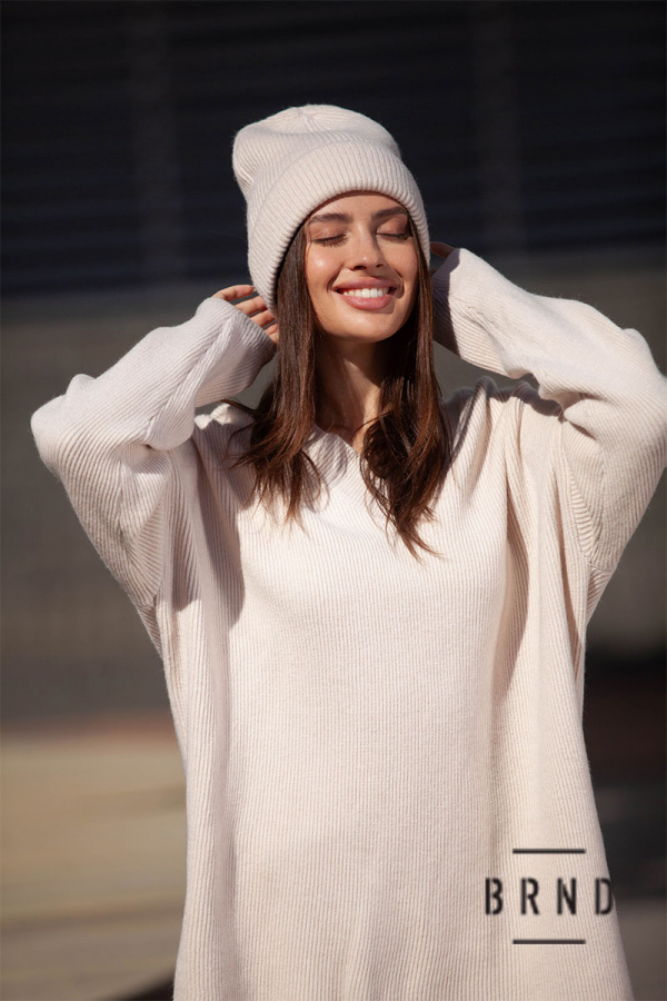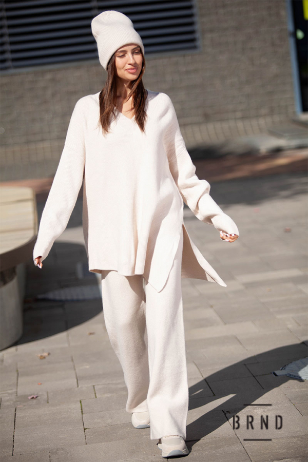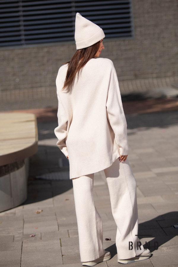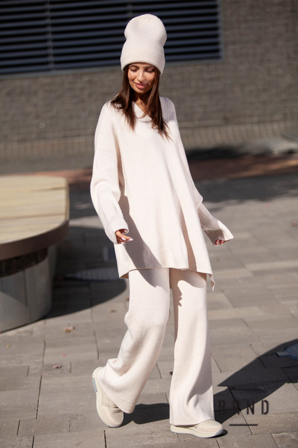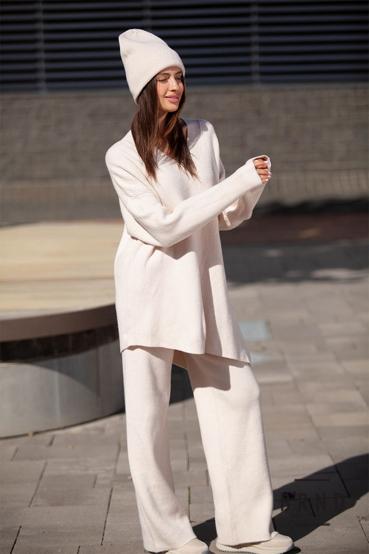 Костюм-трійка трикотажний: светр вільного крою; штани широкі, пасок-гумова стрічка; шапка (Chloe)