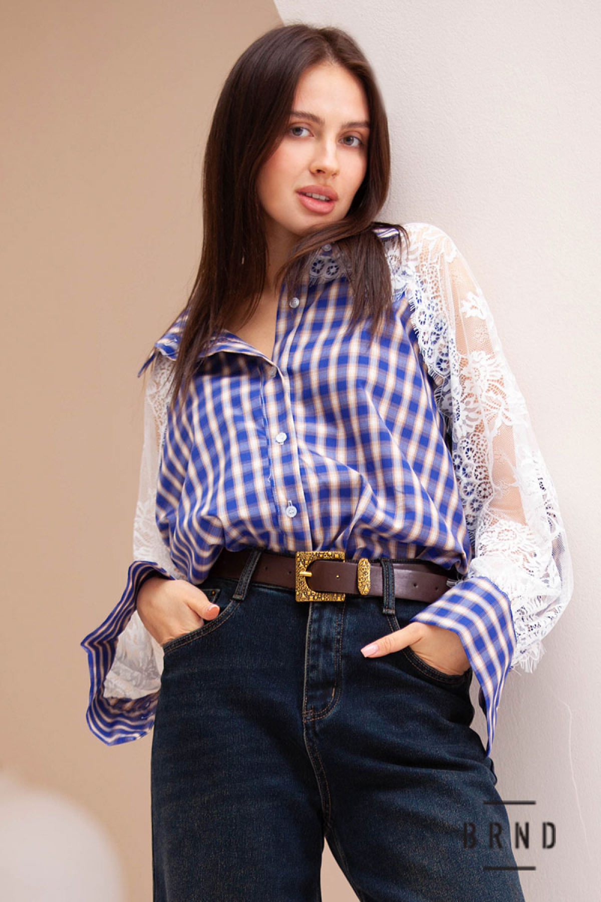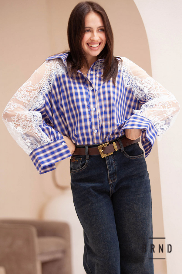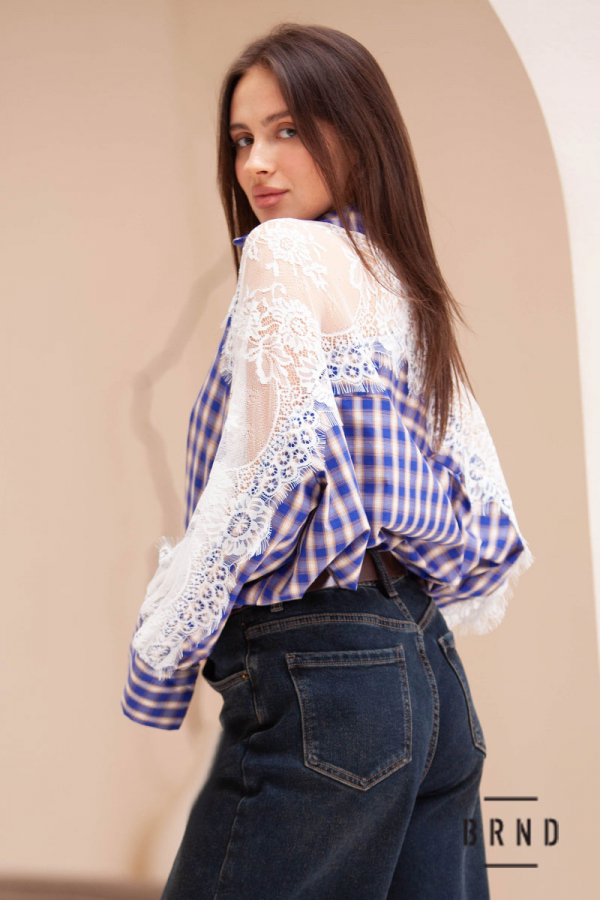 Сорочка вільного крою комбінована з мереживом (Moschino)