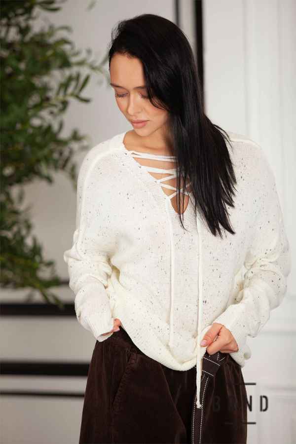 Кофта трикотажна вільного крою, виріз V-подібний зі шнурівкою (Chloe)