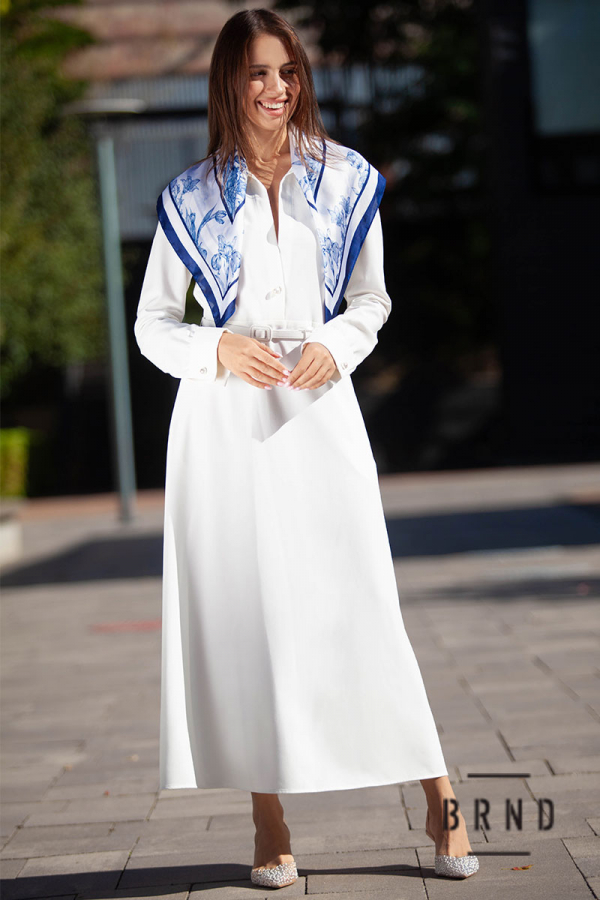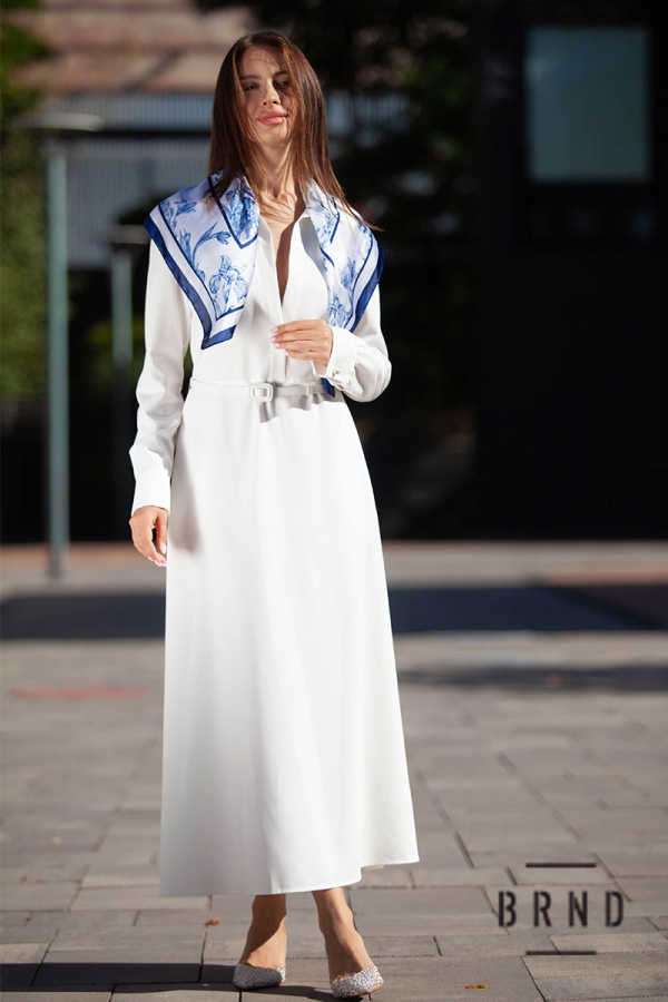 Сукня з відрізною лінією талії, глибоким V-подібним вирізом, кишенями та паском (Christian Dior)