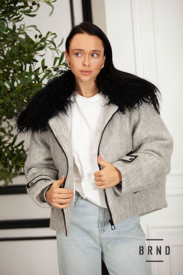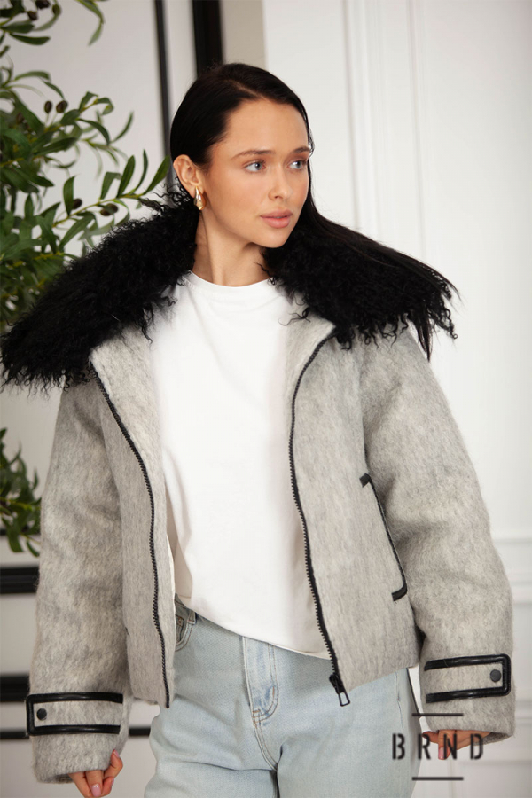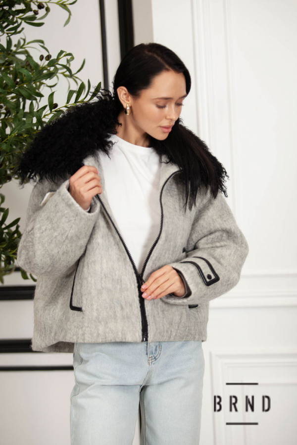 Склад: виріб-вовна 70%, поліестер 30%; наповнювач-пух 90%, пір'я 10%; з'ємне хутро на комірі-альпака 100%