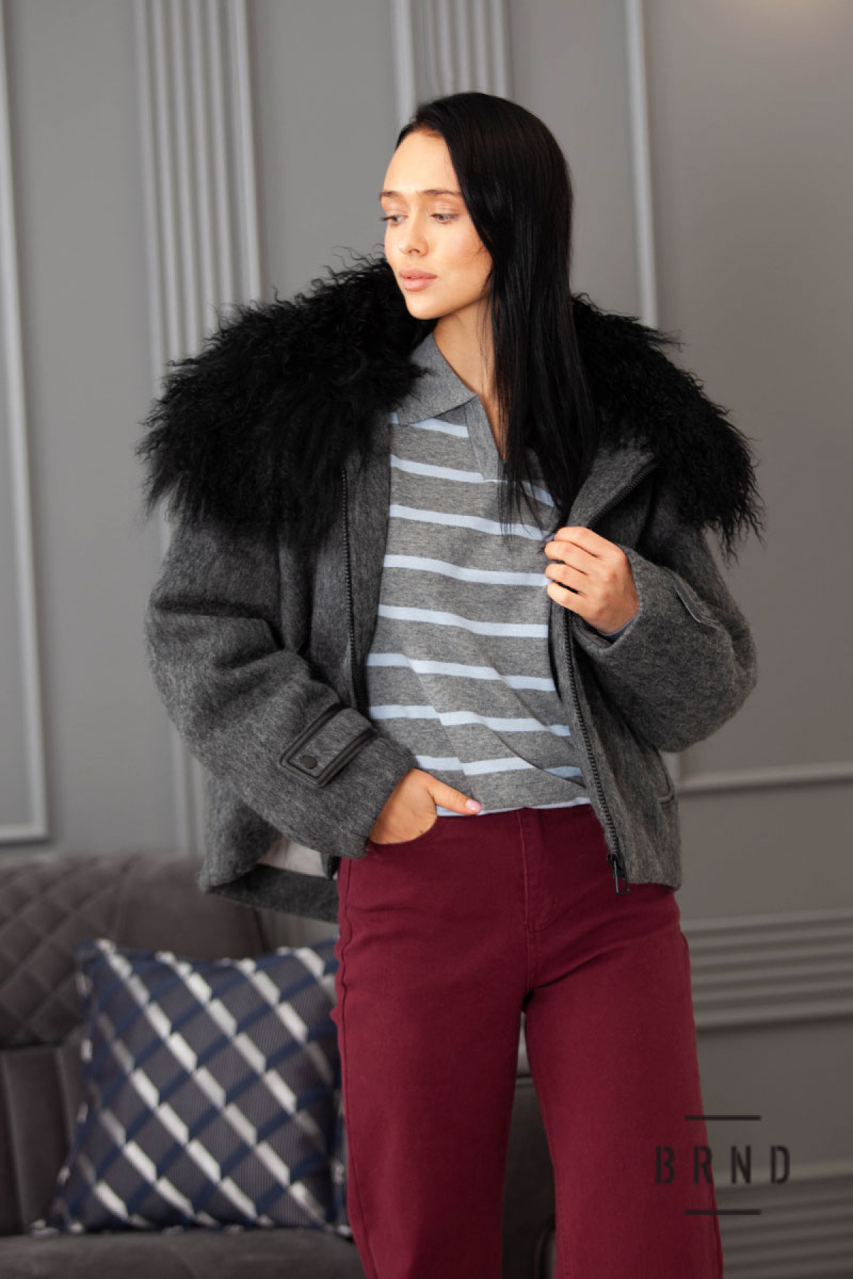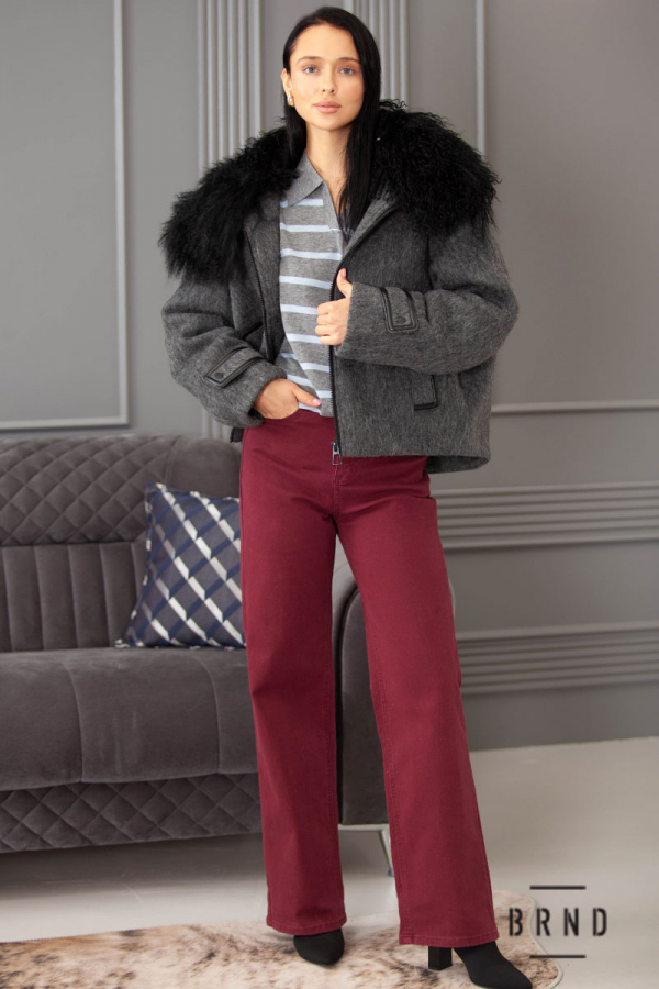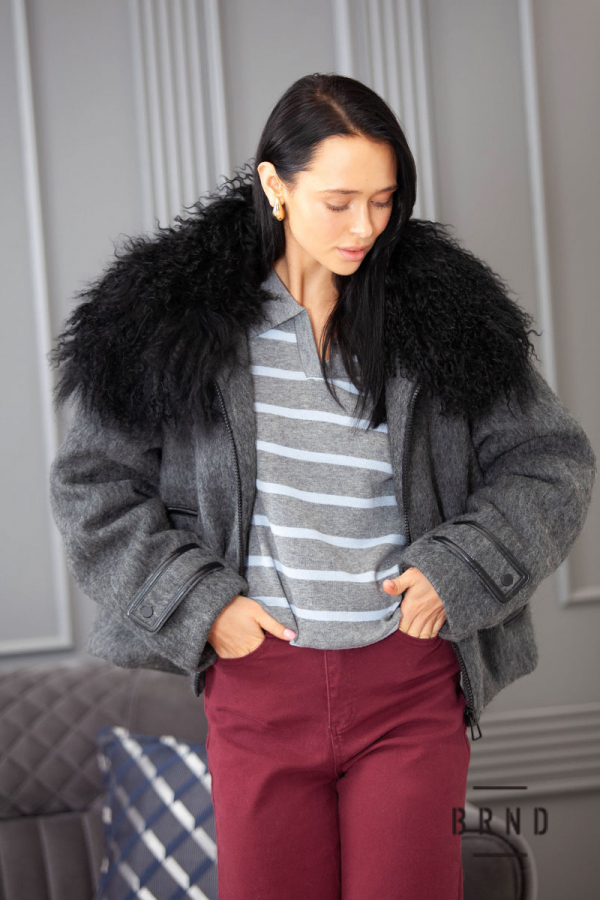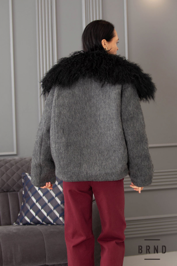 Склад: виріб-вовна 70%, поліестер 30%; наповнювач-пух 90%, пір'я 10%; з'ємне хутро на комірі-альпака 100%