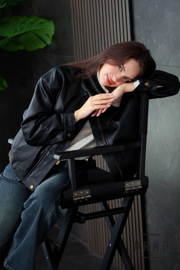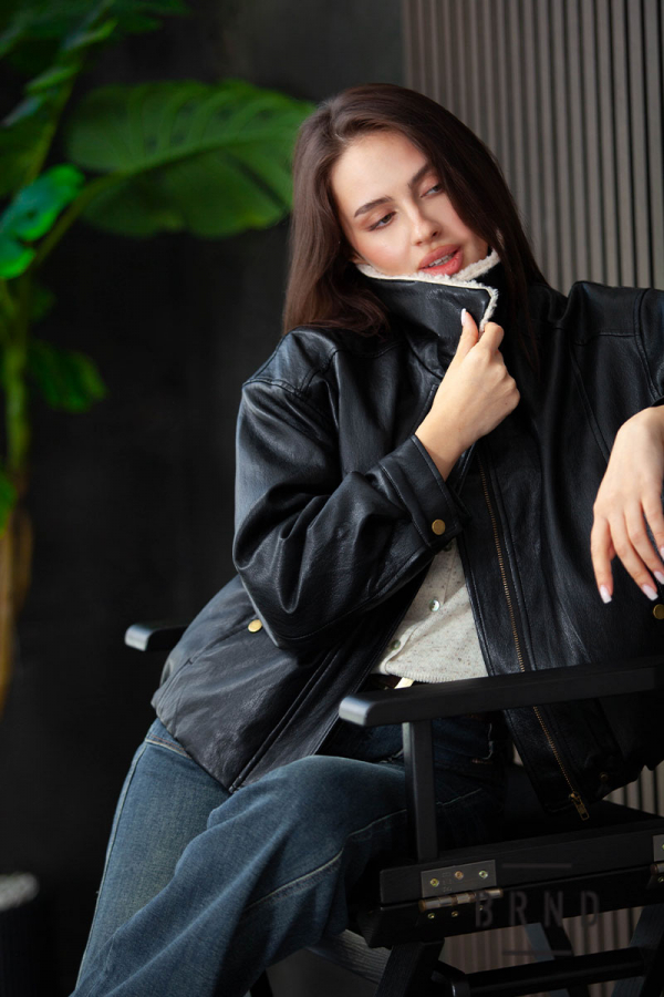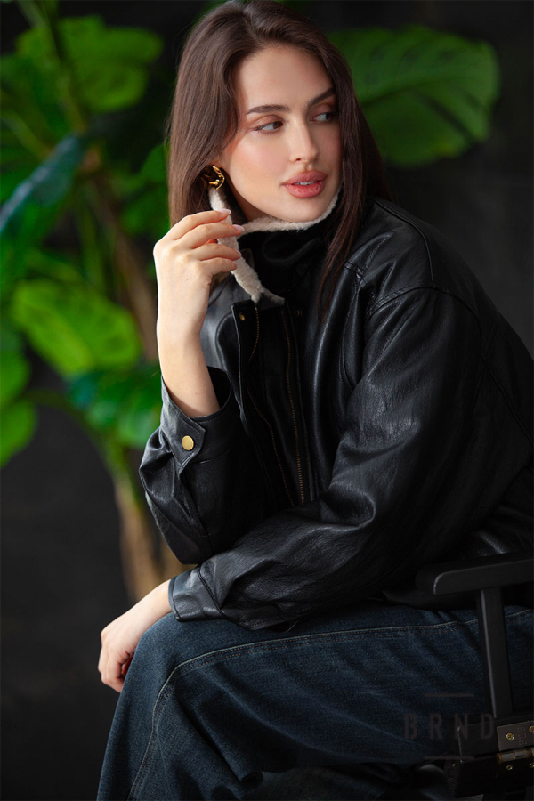Куртка з екошкіри, з коміром з екохутра, крій вільний, плече спущене, утеплена, застібка-блискавка та планка з кнопками (Miu Miu)