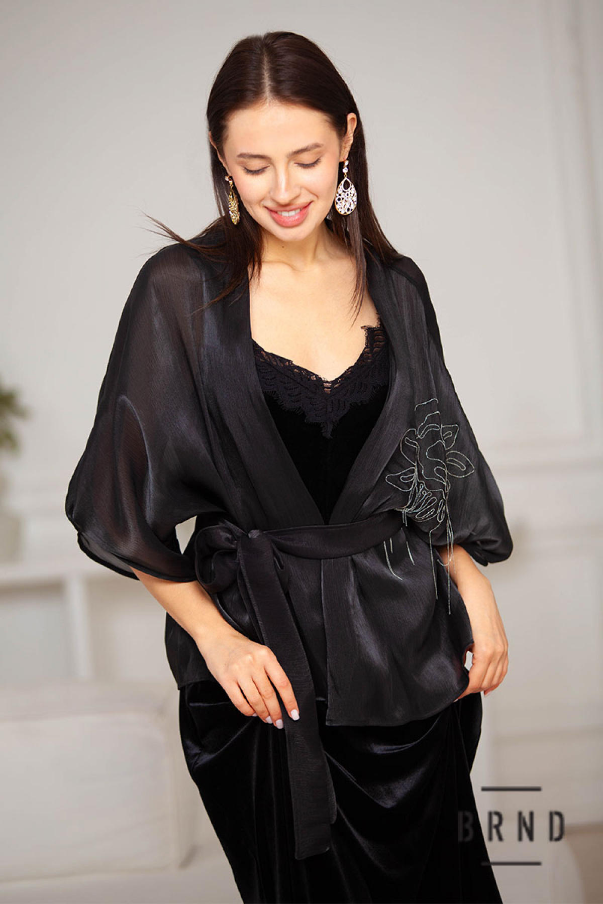 Жакет прозорий з паском, без застібки, крій вільний, декор-вишивка дрібними ланцюгами (Dolce & Gabbana)