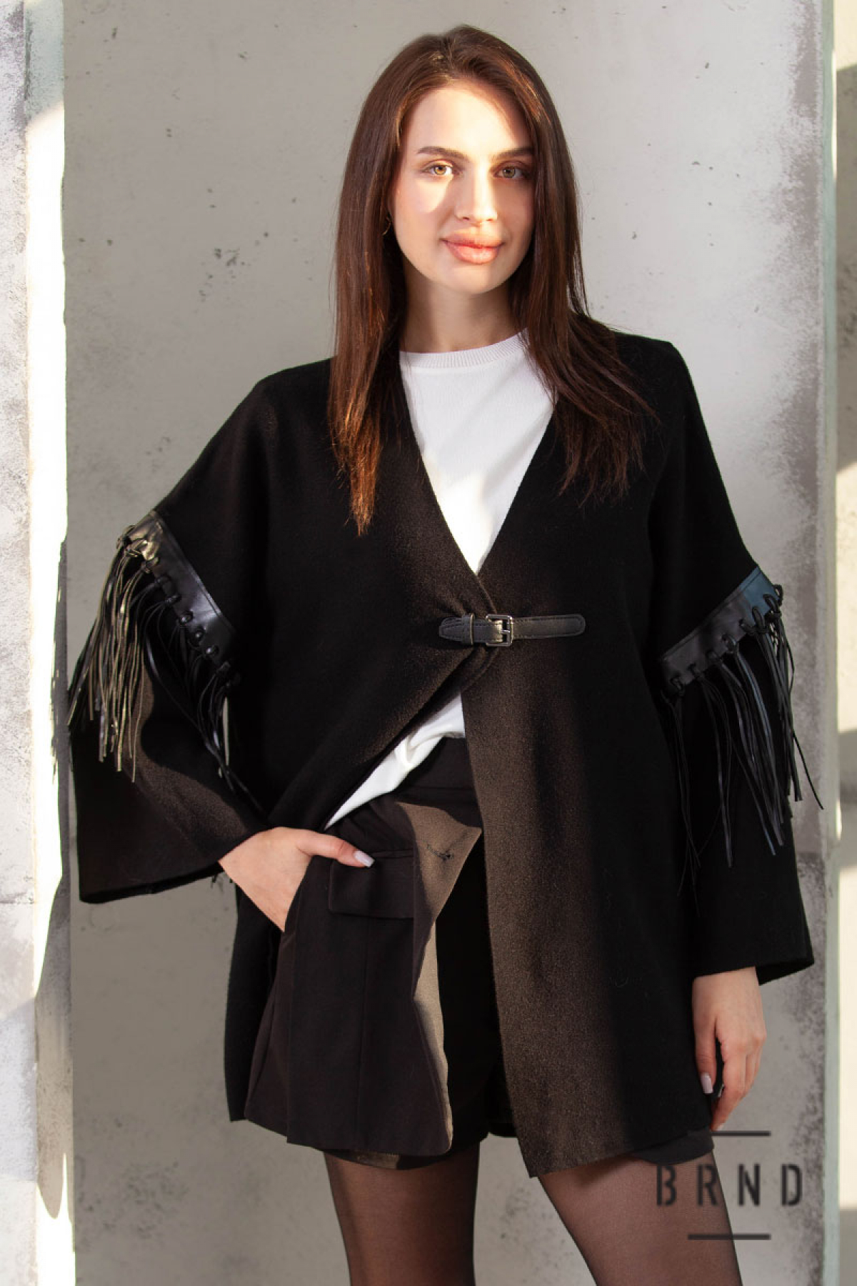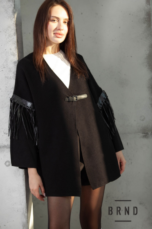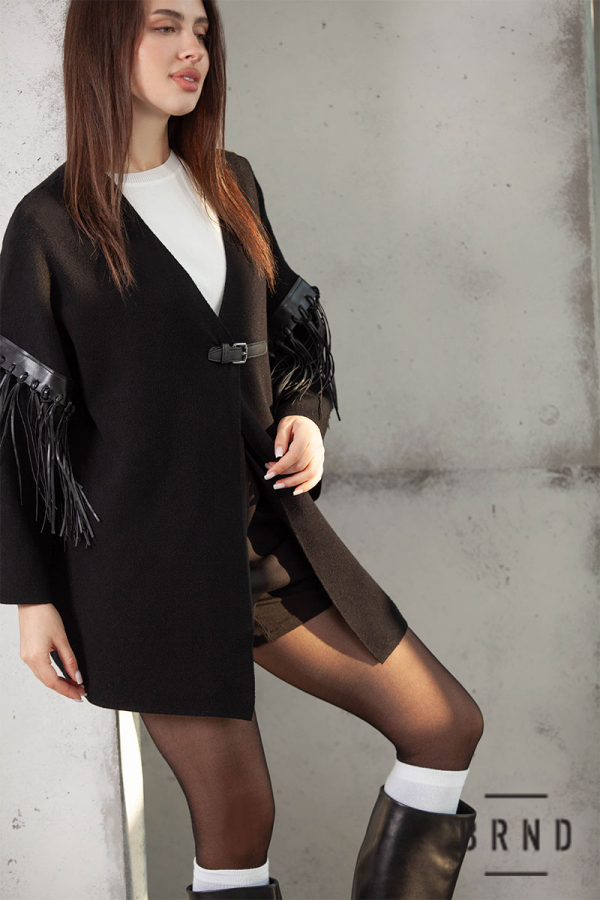 Кардиган вільного крою, лінія плеча спущена, рукава оздоблені бахромою з екошкіри (Dolce & Gabbana)