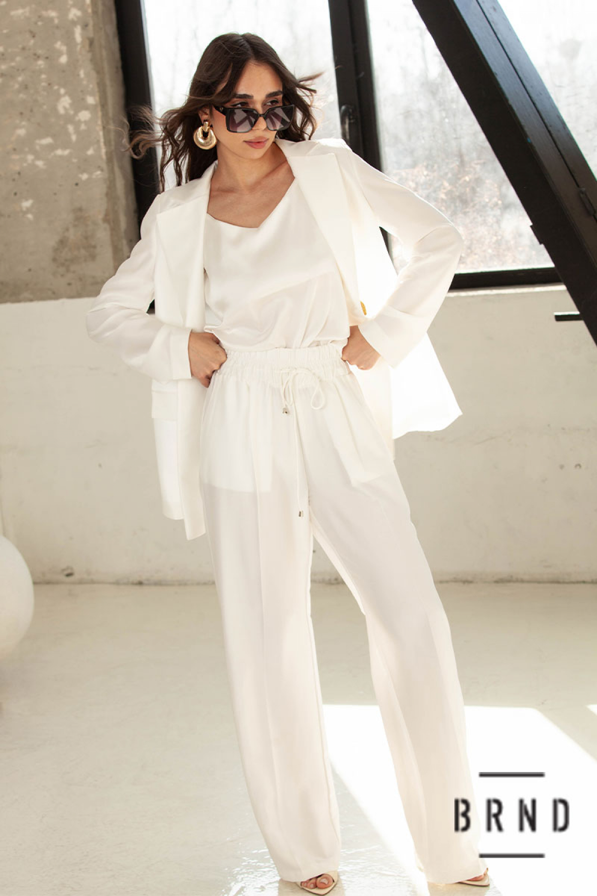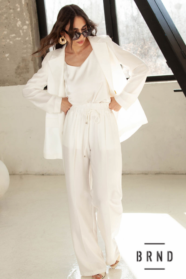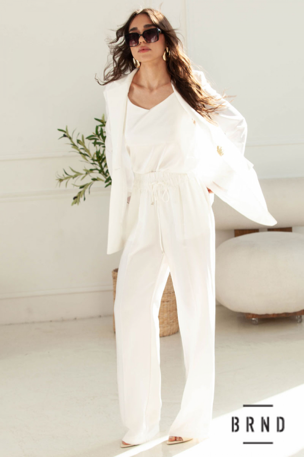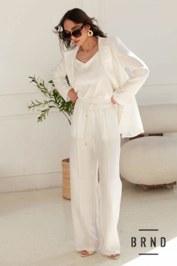 Костюм: жакет вільного крою, з сітчатою вставкою на спині; штани прямі, широкі, пасок-гумова стрічка (Dolce & Gabbana)