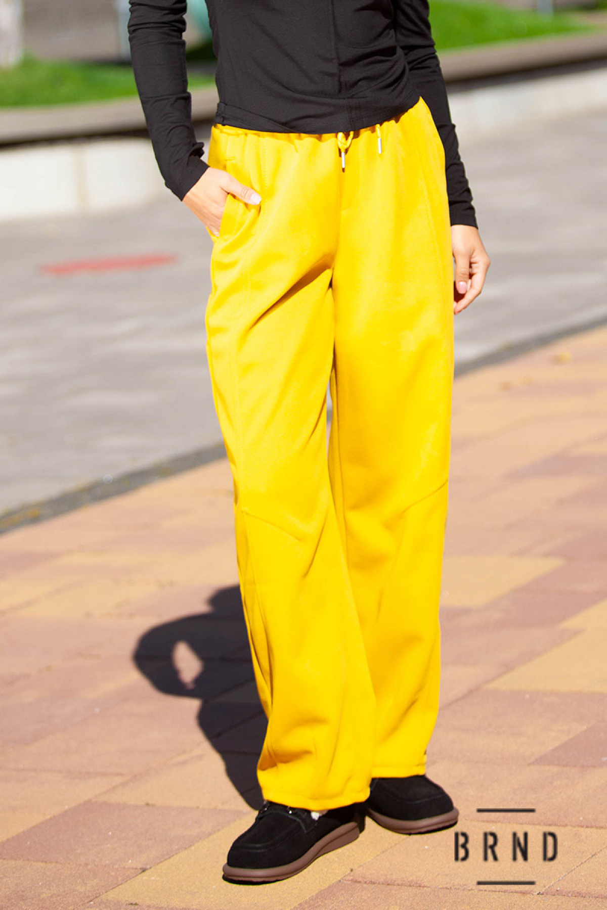Штани спортивні, прямі, широкі, посадка висока, пасок-гумова стрічка та шнур (Fendi)