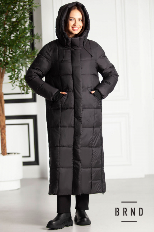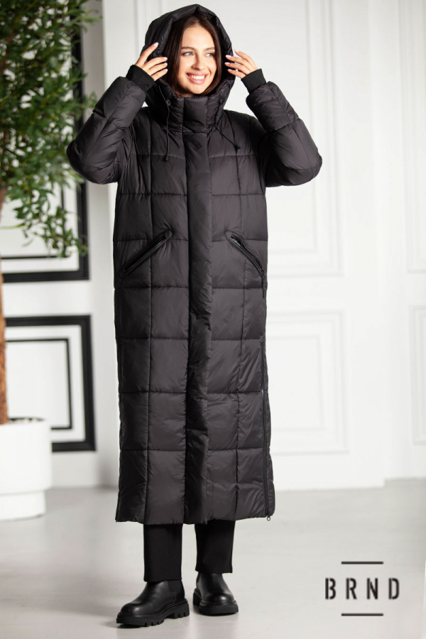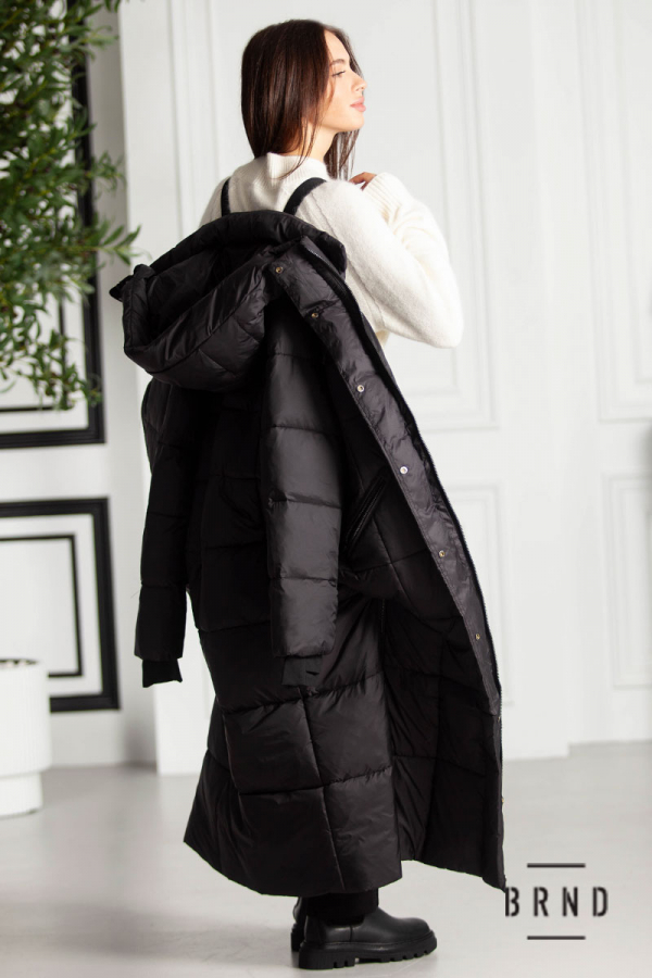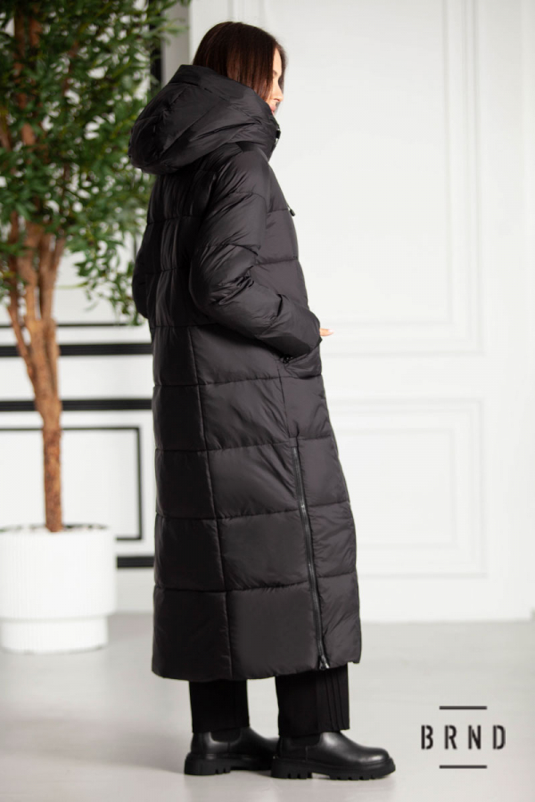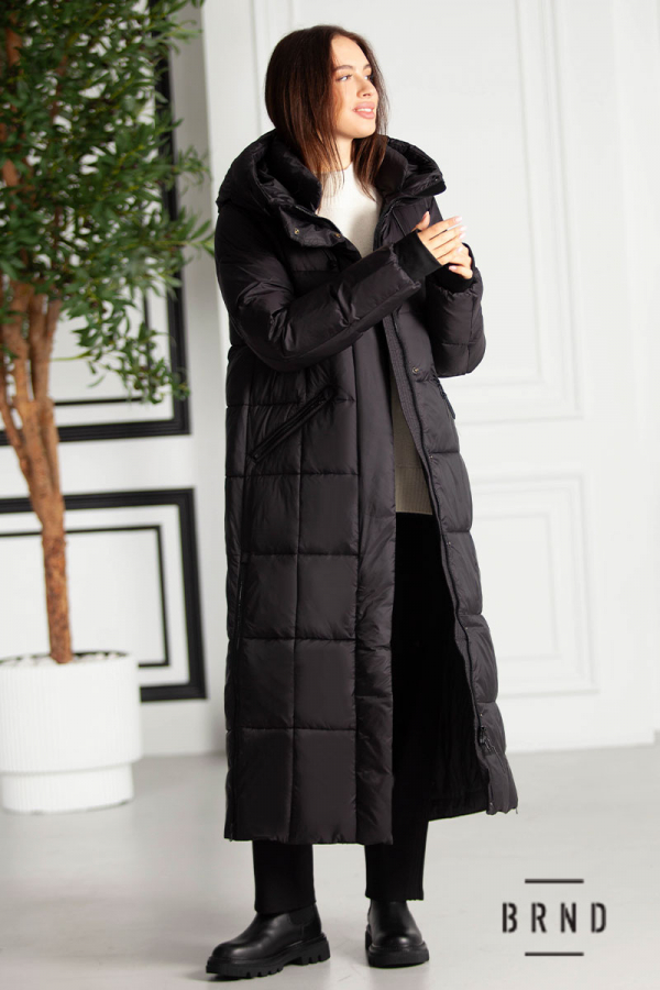 Куртка довга, прямого крою з каптуром, карманами на блискавах, трикотажними манжетами-мітенками, мембраною та блискавками по боках (Fendi)
