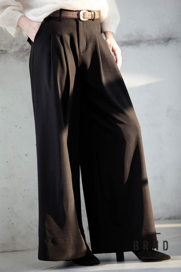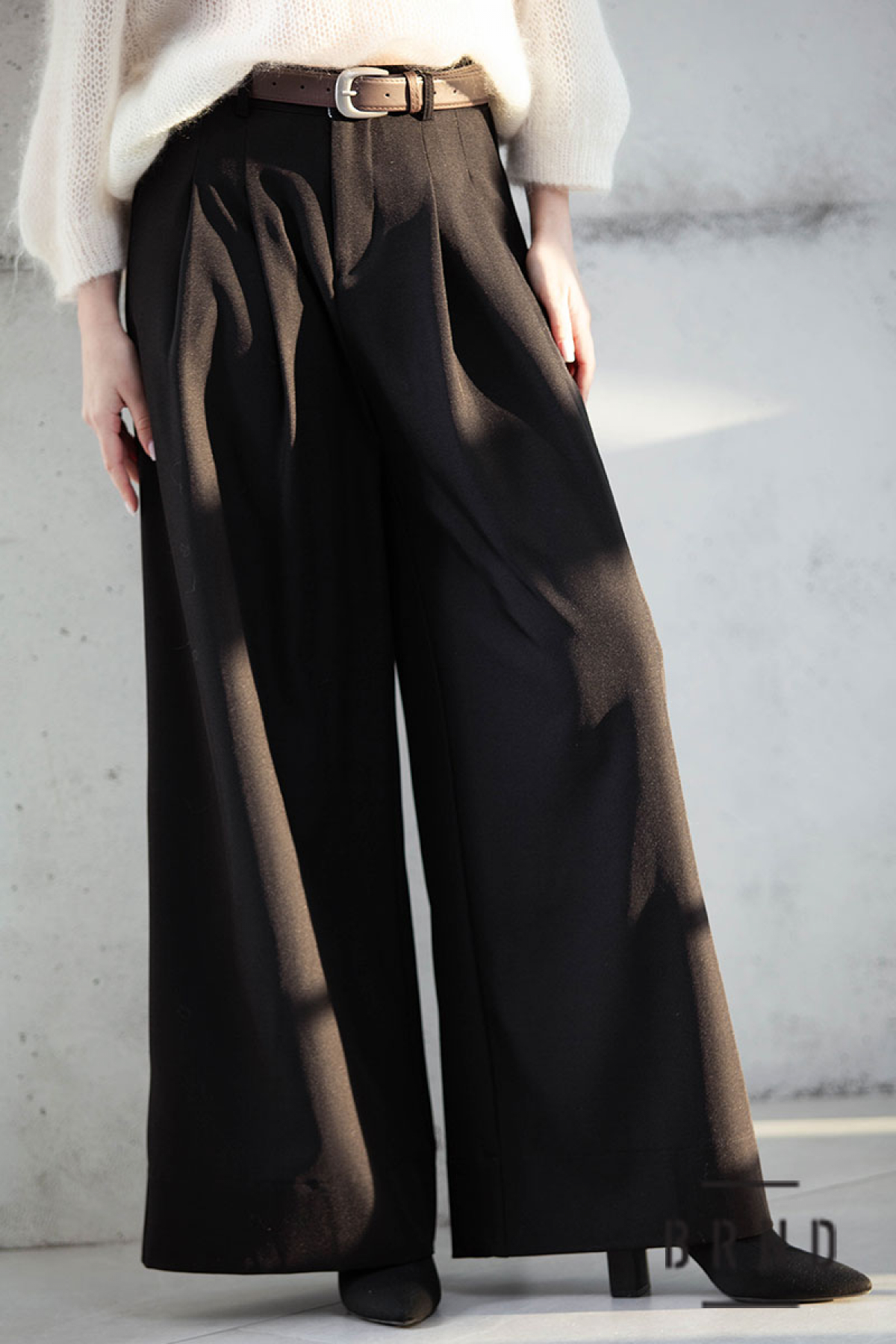 Штани прямі, широкі, з косими кишенями та паском, посадка висока (Fendi)