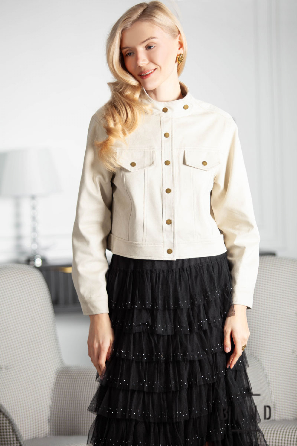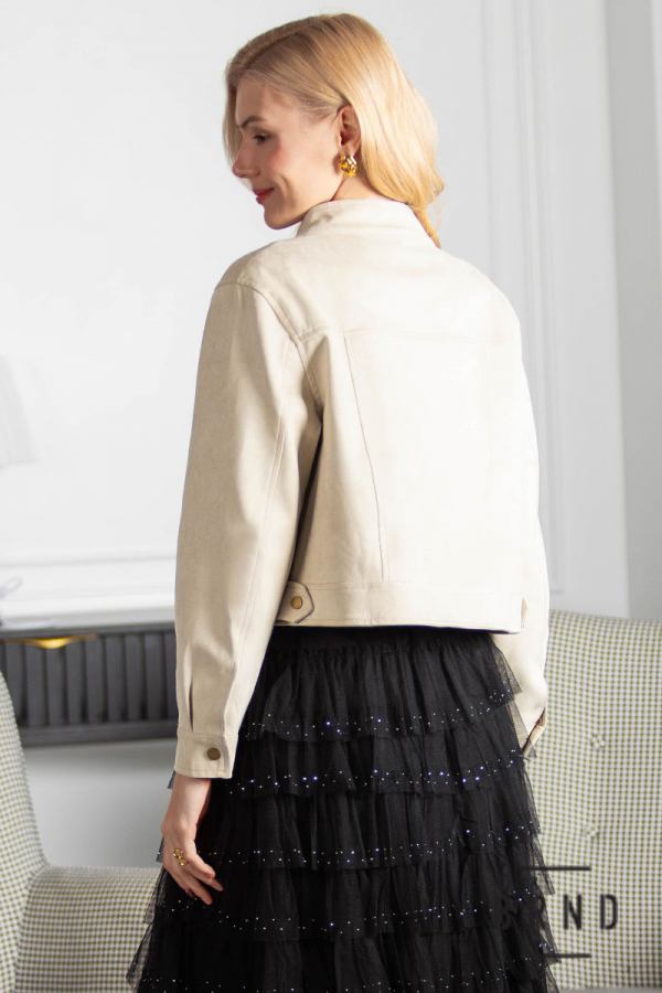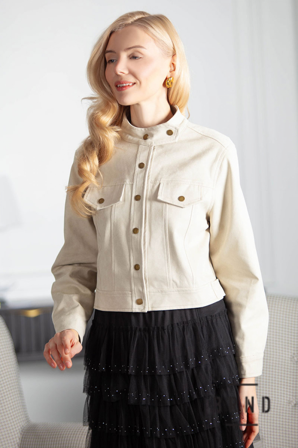 Куртка з екозамши, коротка, на кнопках, прямого крою, з накладними кишенями, комір-стійка (Fendi)