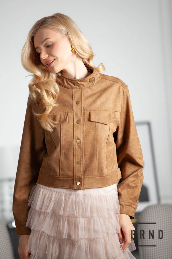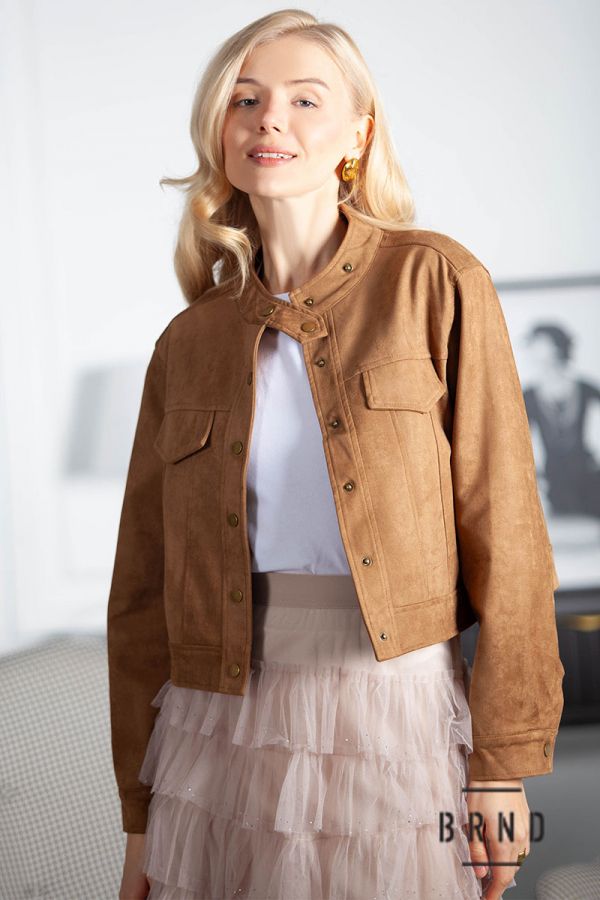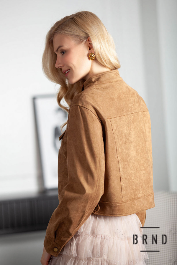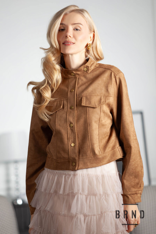 Куртка з екозамши, коротка, на кнопках, прямого крою, з накладними кишенями, комір-стійка (Fendi)