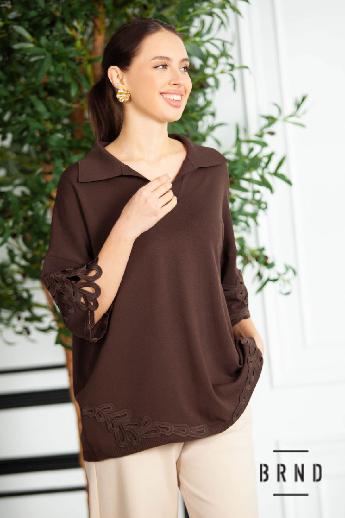 Кофта-поло вільного крою, оздоблена шиттям (Fendi)