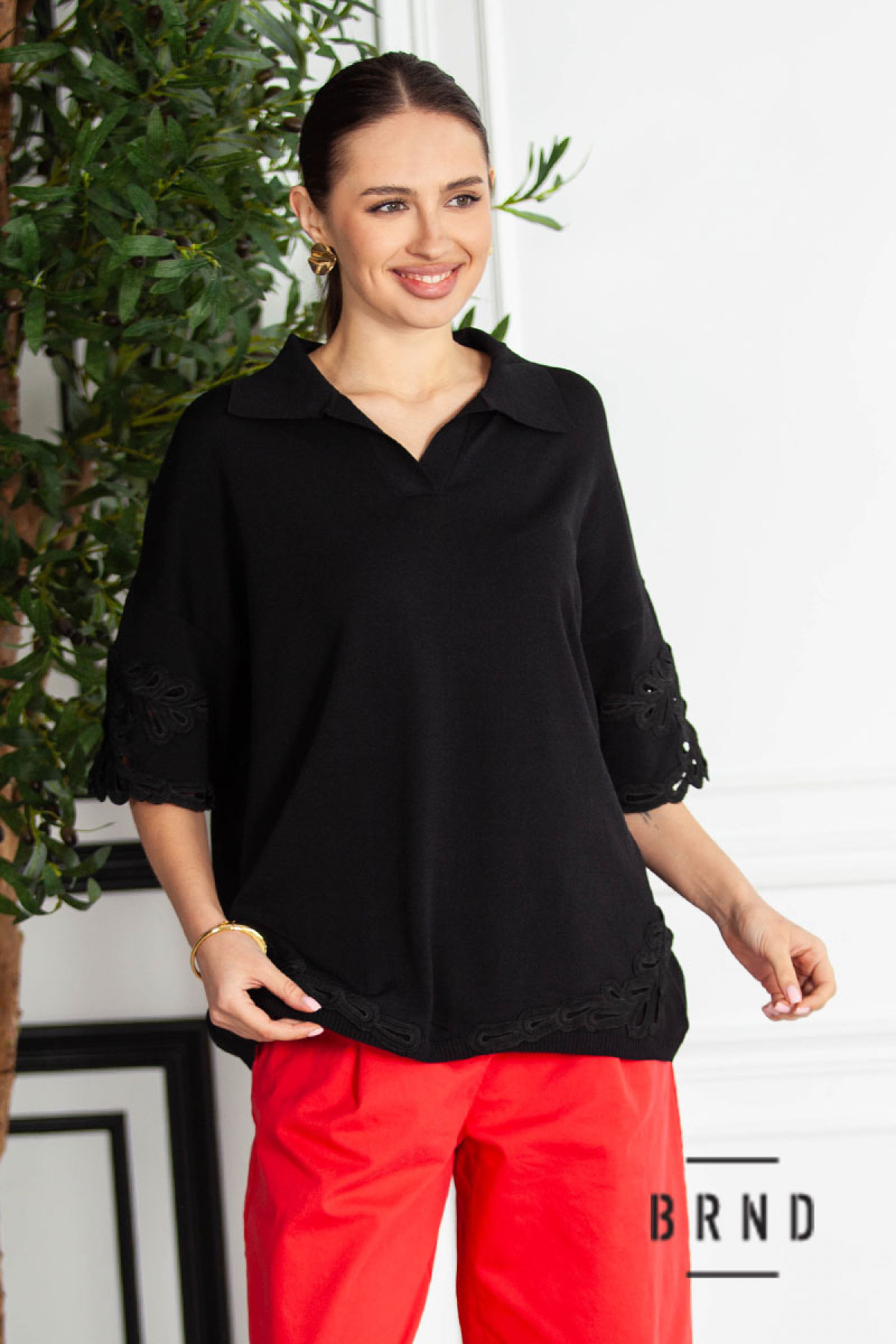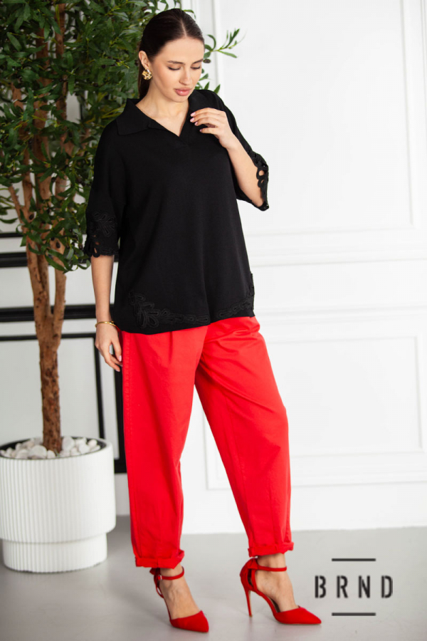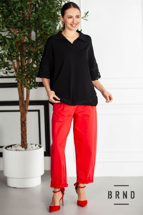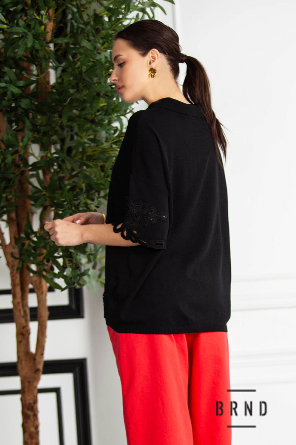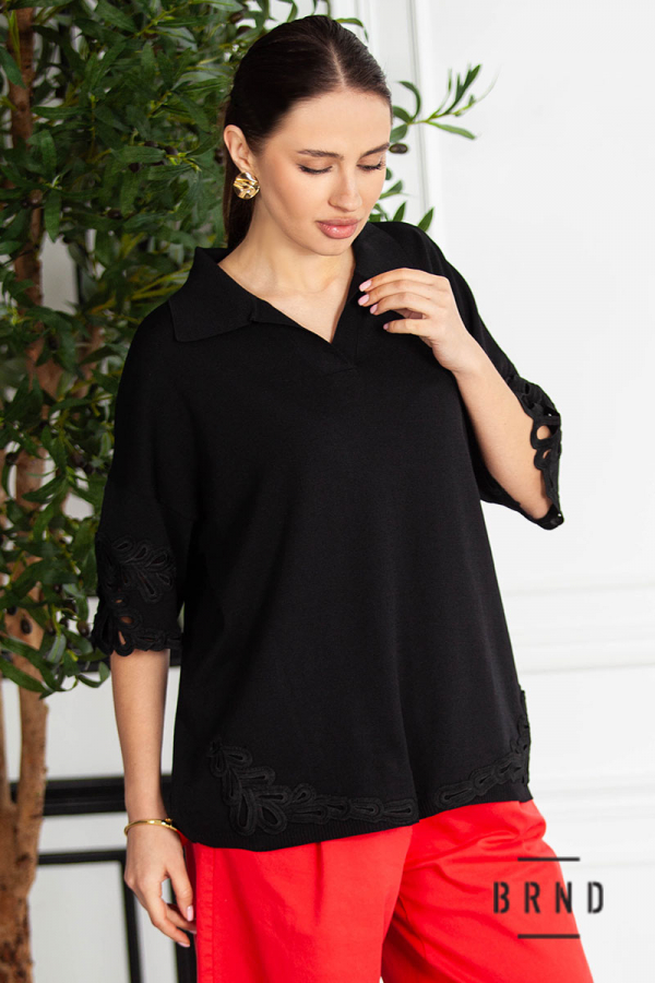 Кофта-поло вільного крою, оздоблена шиттям (Fendi)