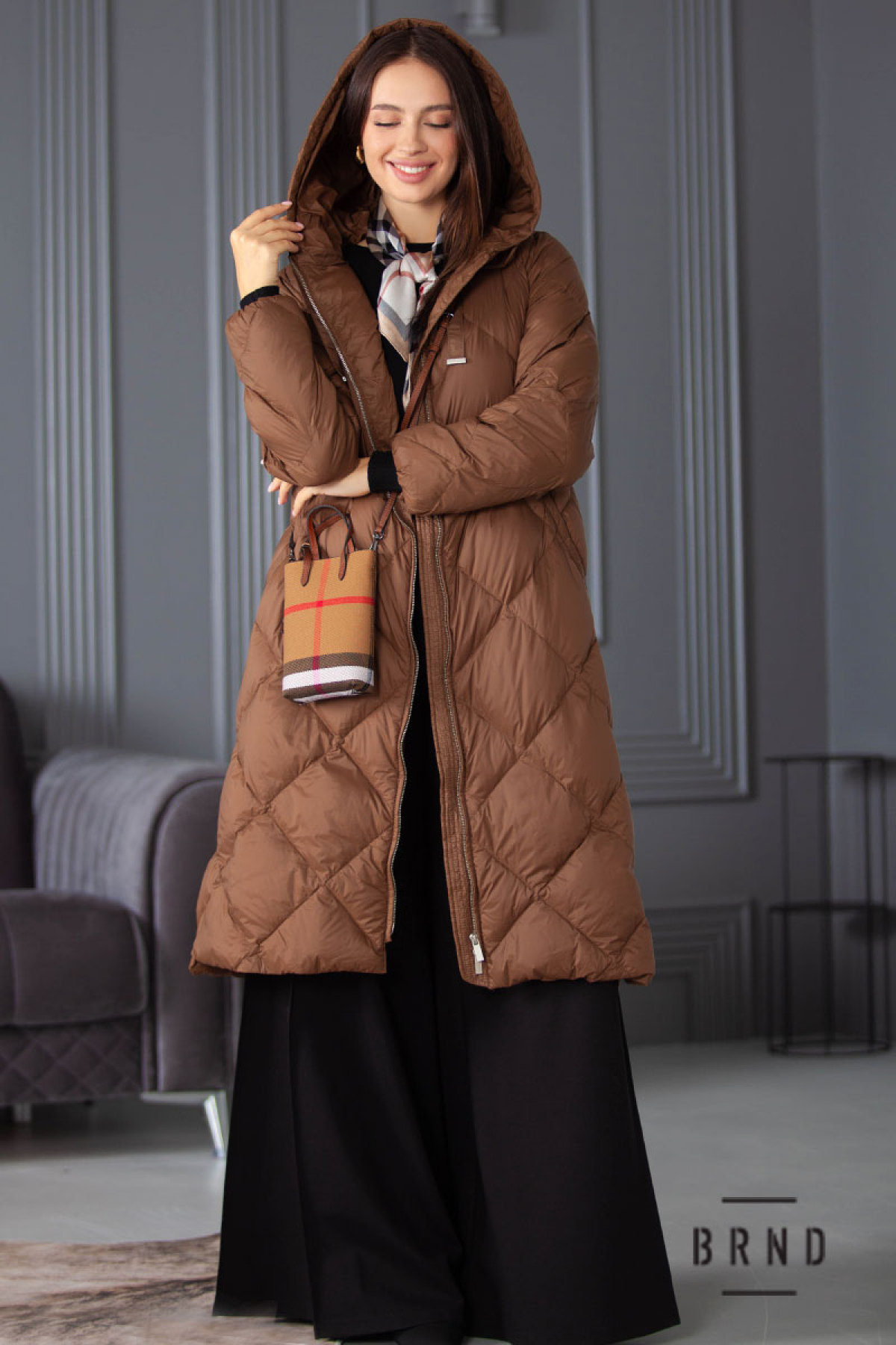 Пальто пухове А-подібного крою, з каптуром та паском (Gucci)