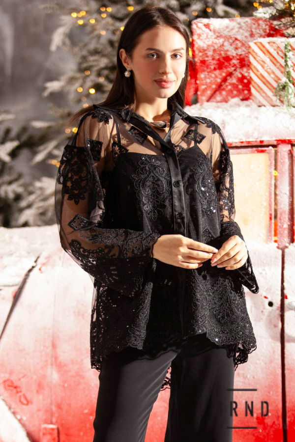 Блуза прямого крою, прозора, оздоблення-вишивка та паєтки (Gucci)