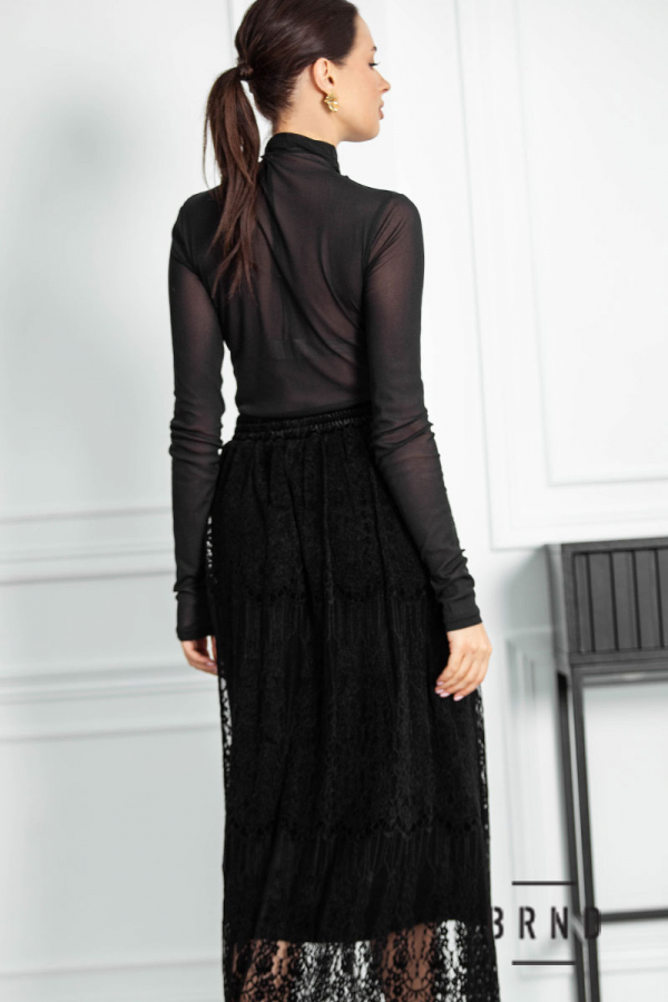 Лонгслів сітчастий, комбінований з екошкірою, приталеного крою (Gucci)