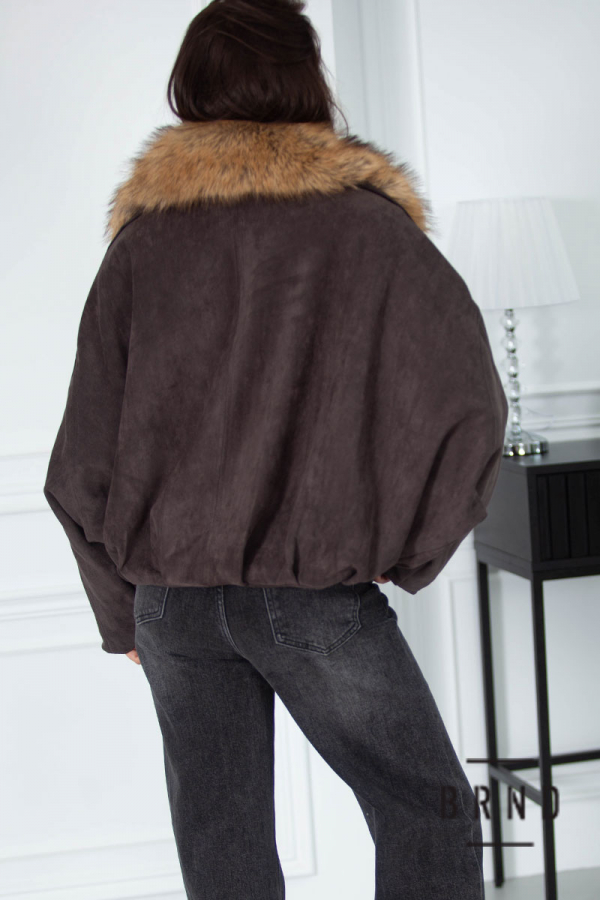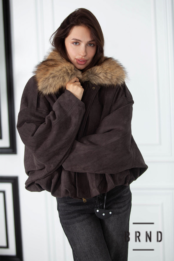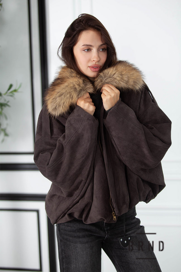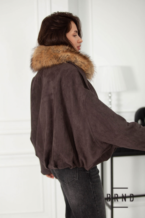 Куртка з екозамши, зі знімним коміром зі штучного хутра, вільного крою, лінія плеча спущена (Gucci)