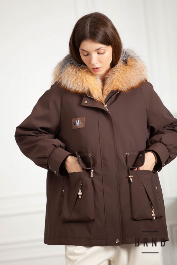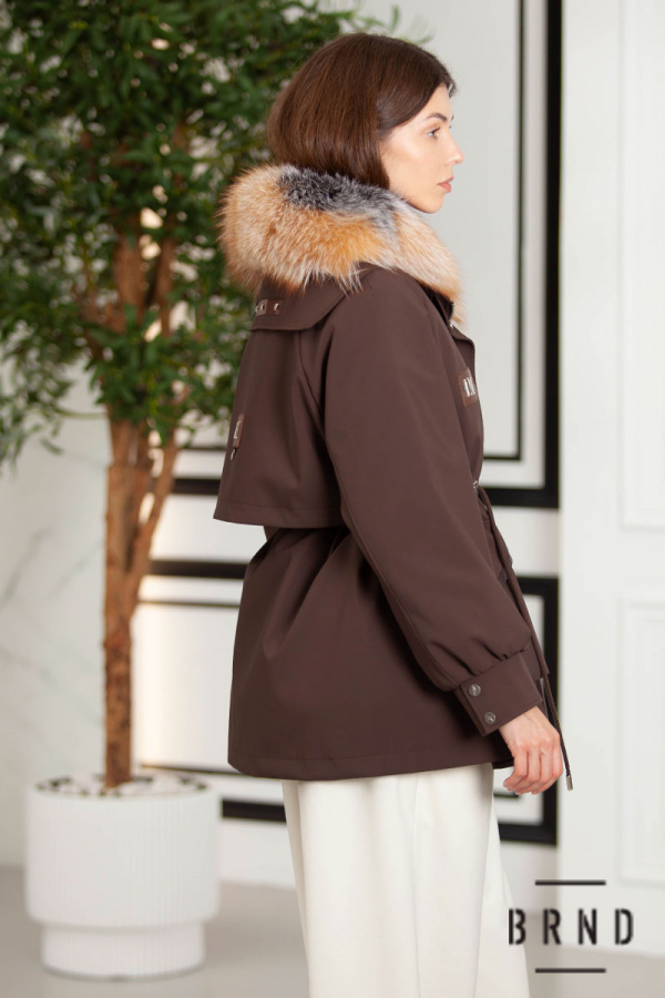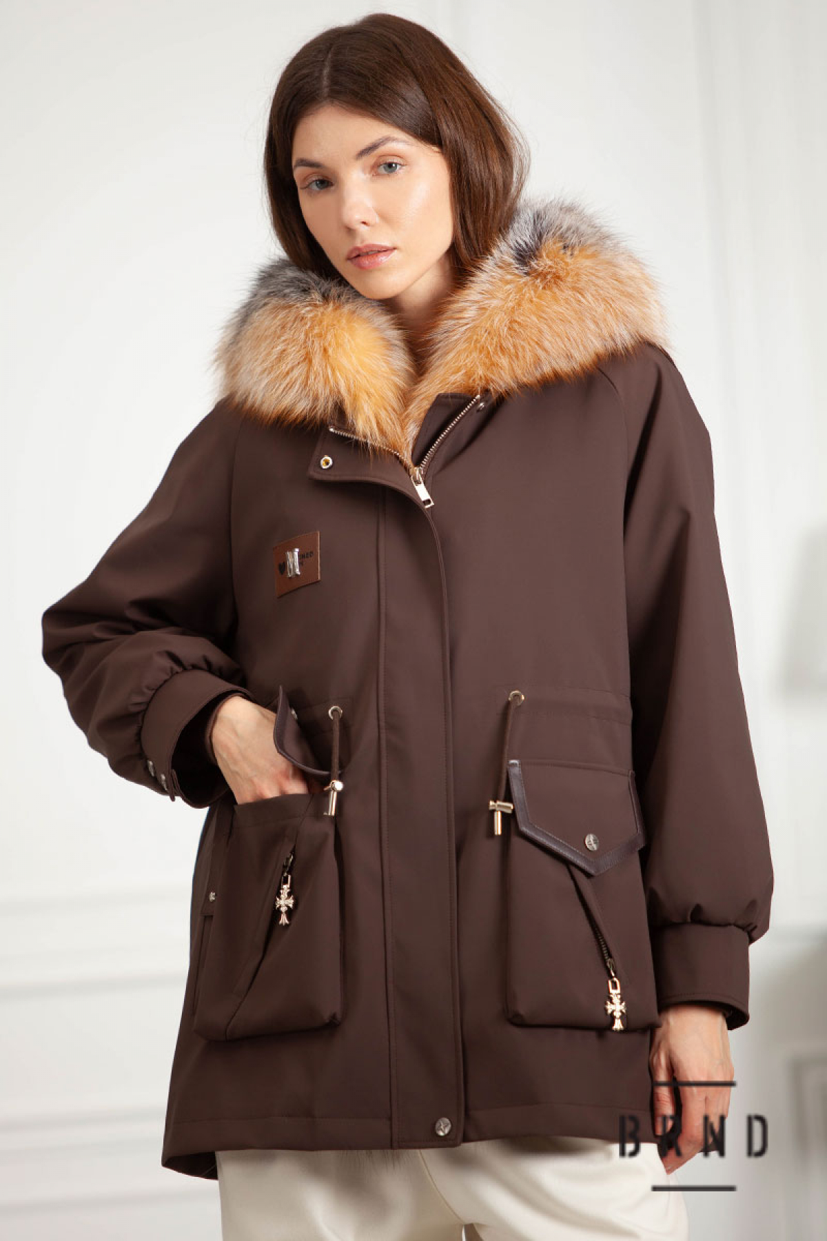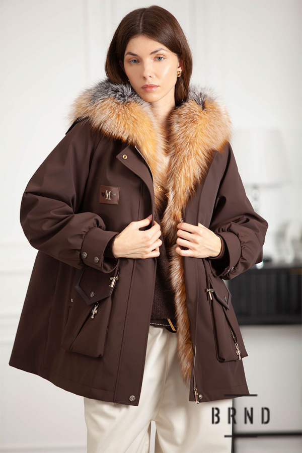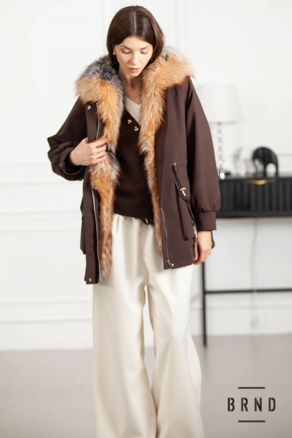 Парка демісезонна, прямого крою зі знімною внутрішньою частиною зі штучного хутра з трикотажними манжетами, пасок-регульований шнур, обробка-хутро песця (Louis Vuitton)