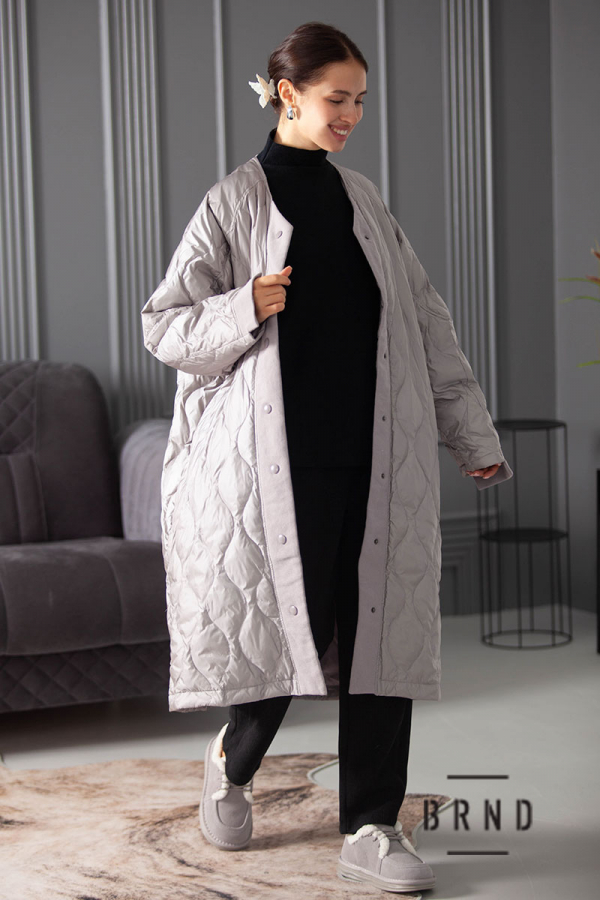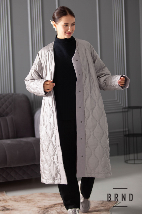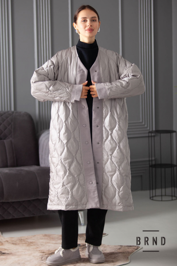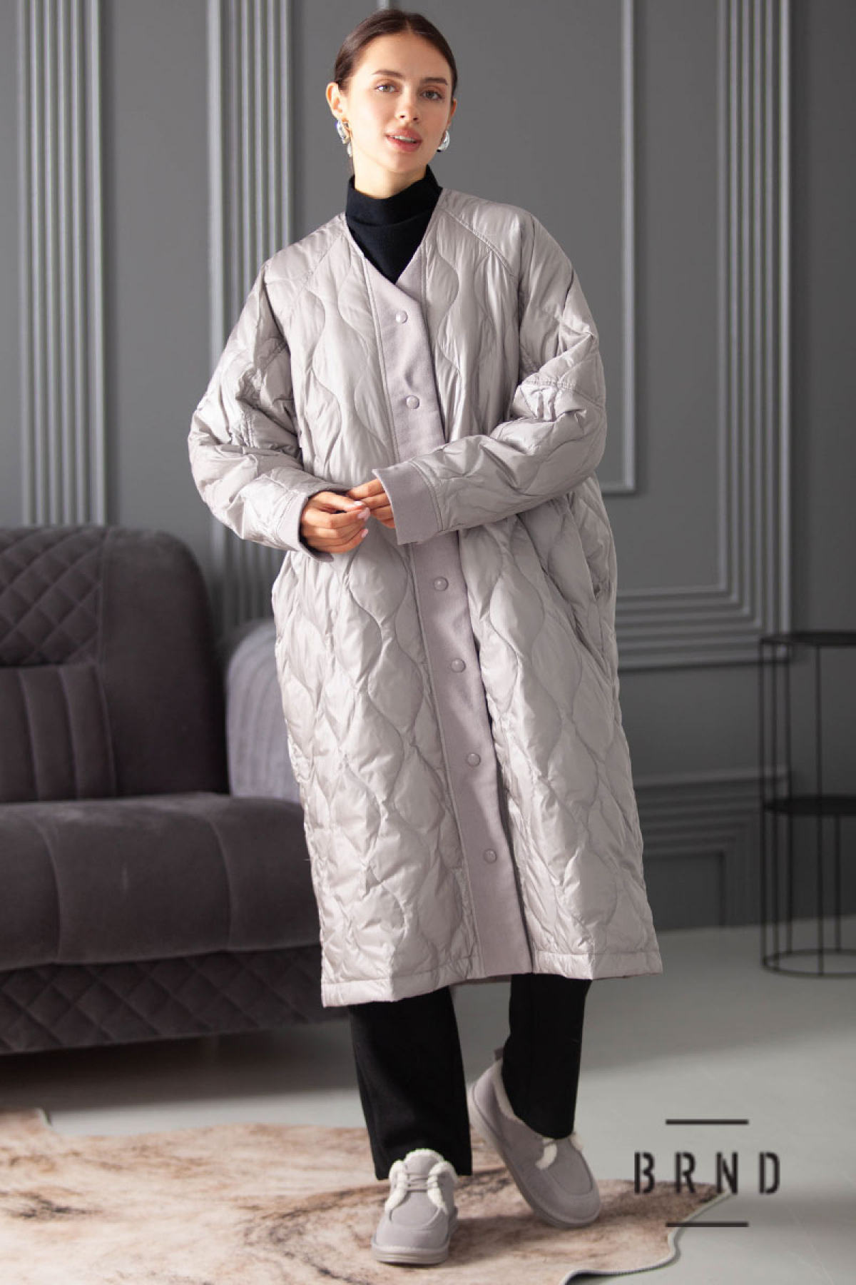 Пальто пухове прямого крою, з шалевим косіром, трикотажними елементами та кишенями, на кнопках (Miu Miu)