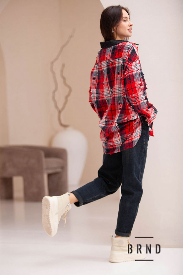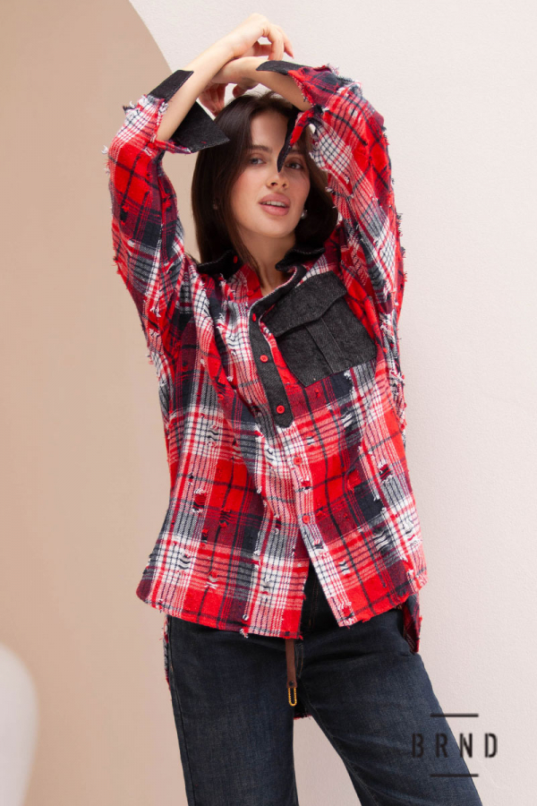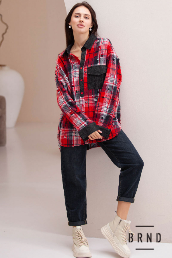 Сорочка прямого крою з ефектом Washed, комбінована з денімом (Moschino)