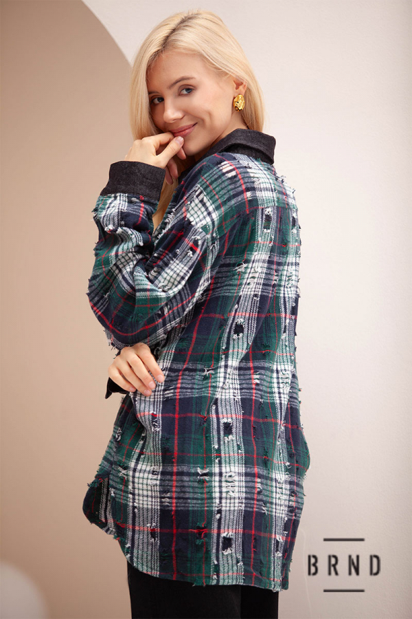 Сорочка прямого крою з ефектом Washed, комбінована з денімом (Moschino)