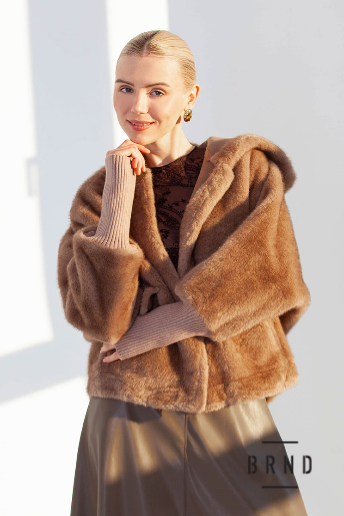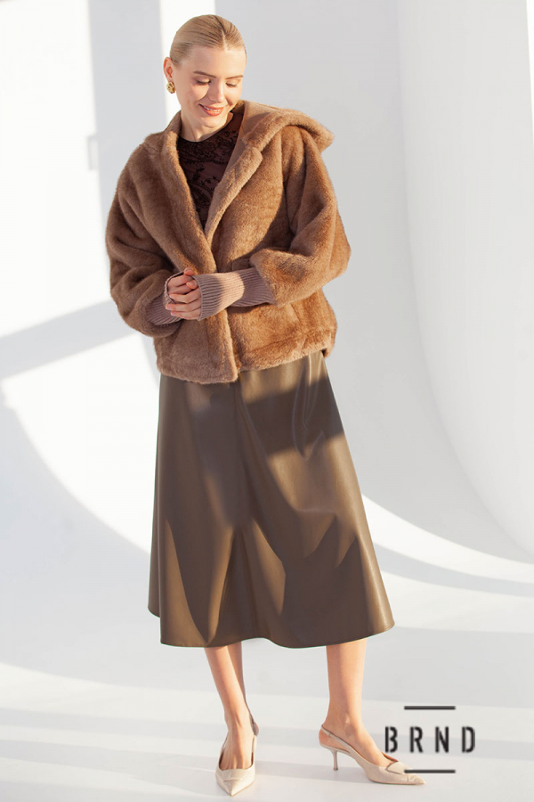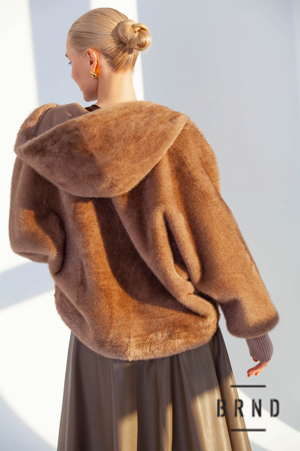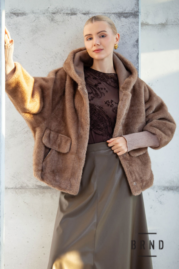 Кожушок з еко хутра, вільного крою, з кишенями та каптуром, застібка-крючок (Moschino)