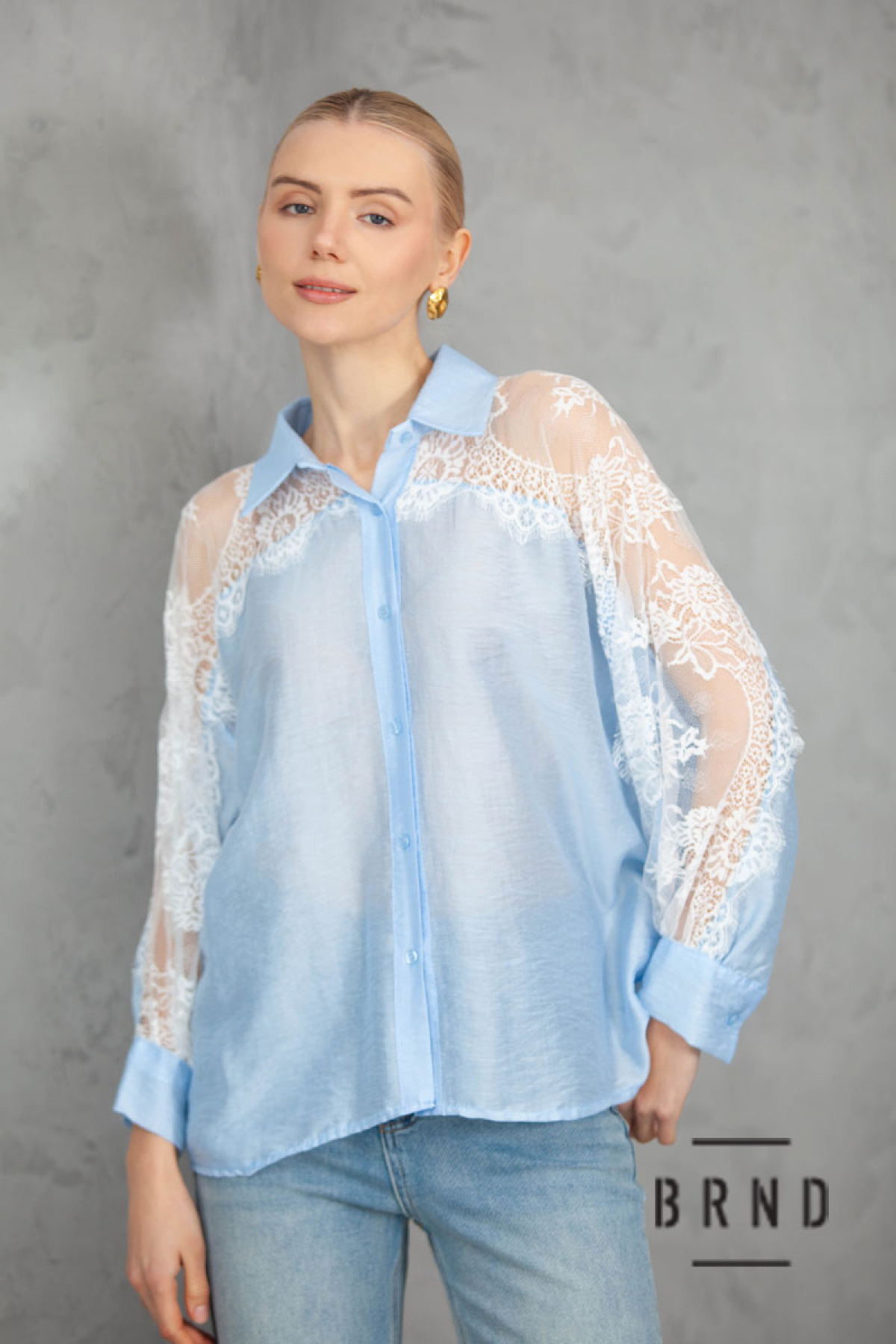 Сорочка вільного крою комбінована з мереживом (Moschino)