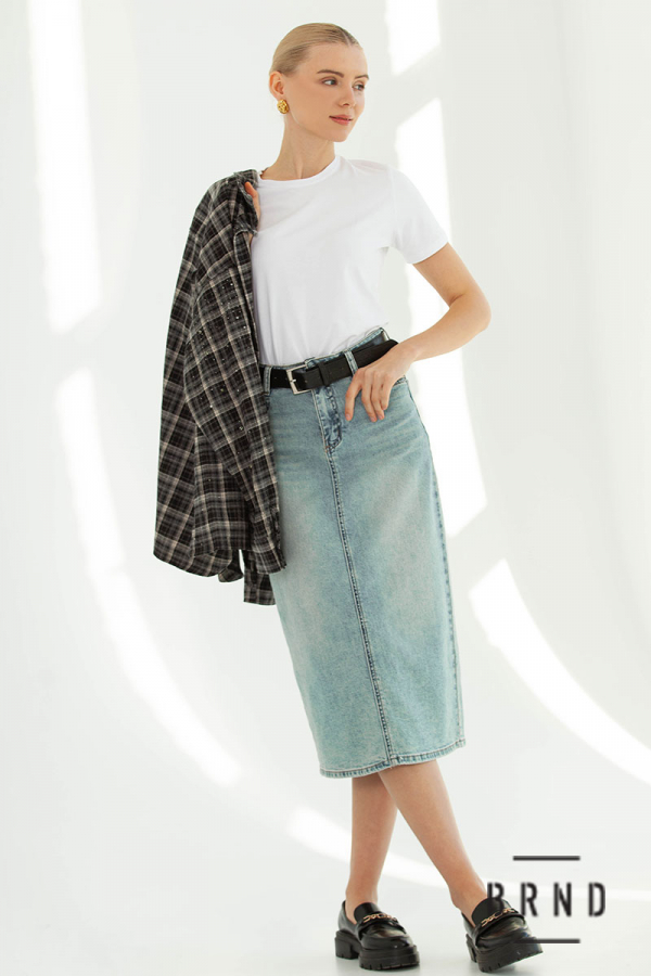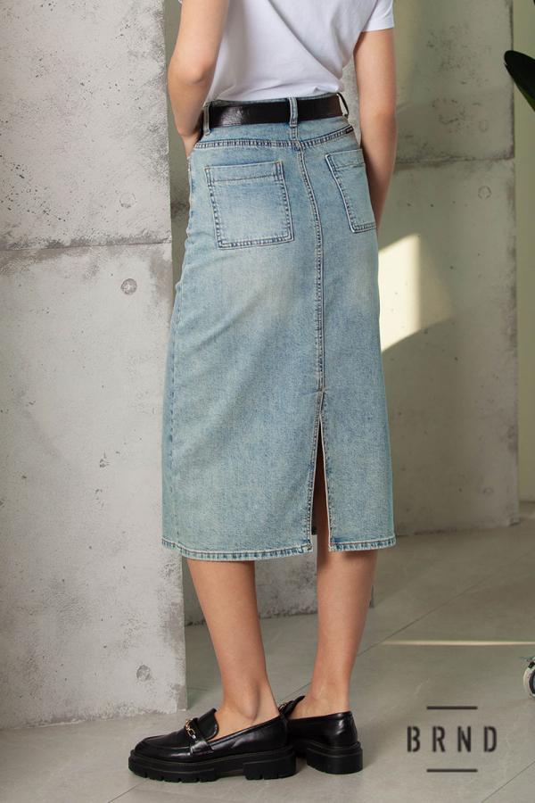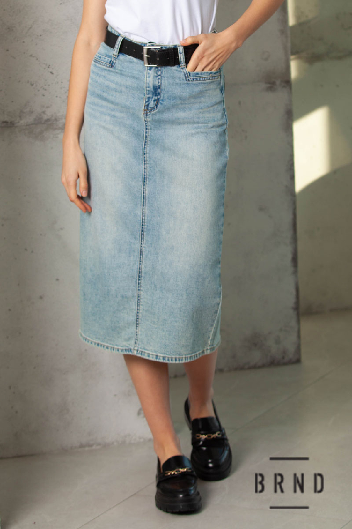 Спідниця-олівець джинсова, з паском та розрізом (Other Brand)