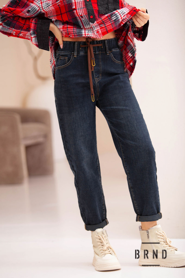 Джинси звужені, пасок-гумова стрічка та шнур, висока посадка (Other Brand)