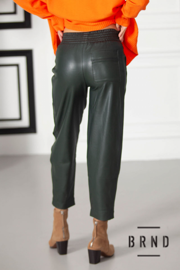 Штани з екошкіри завужені, пасок-гумова стрічка, посадка середня (Other Brand)