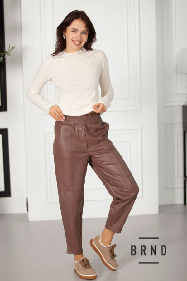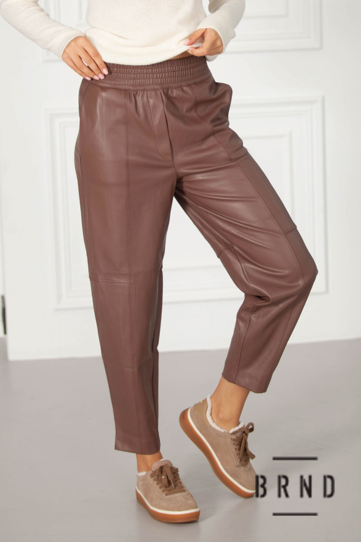 Штани з екошкіри завужені, пасок-гумова стрічка, посадка середня (Other Brand)