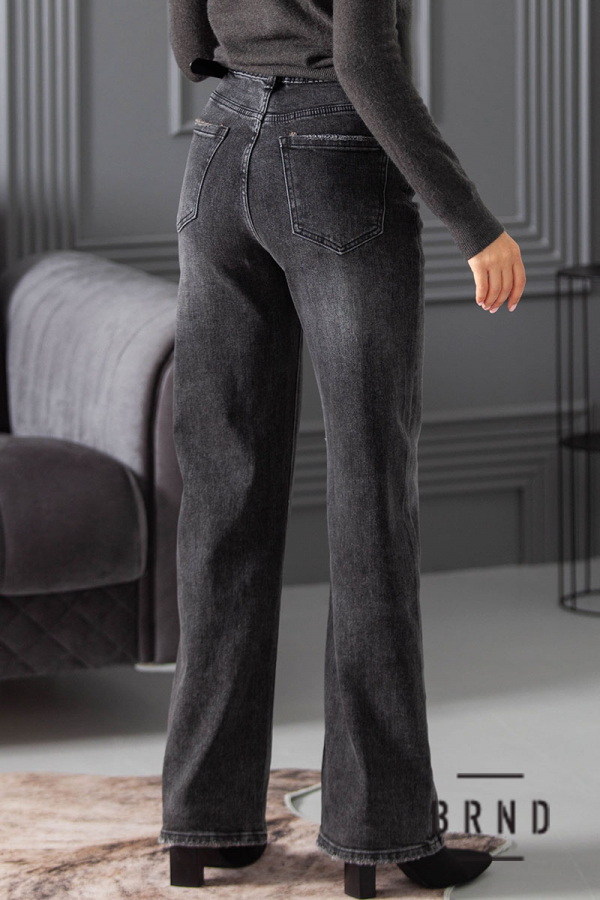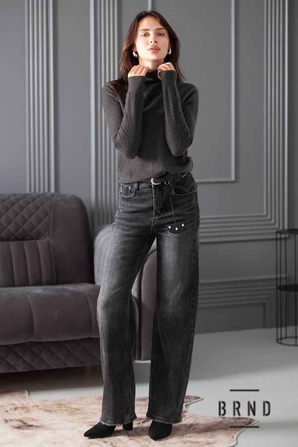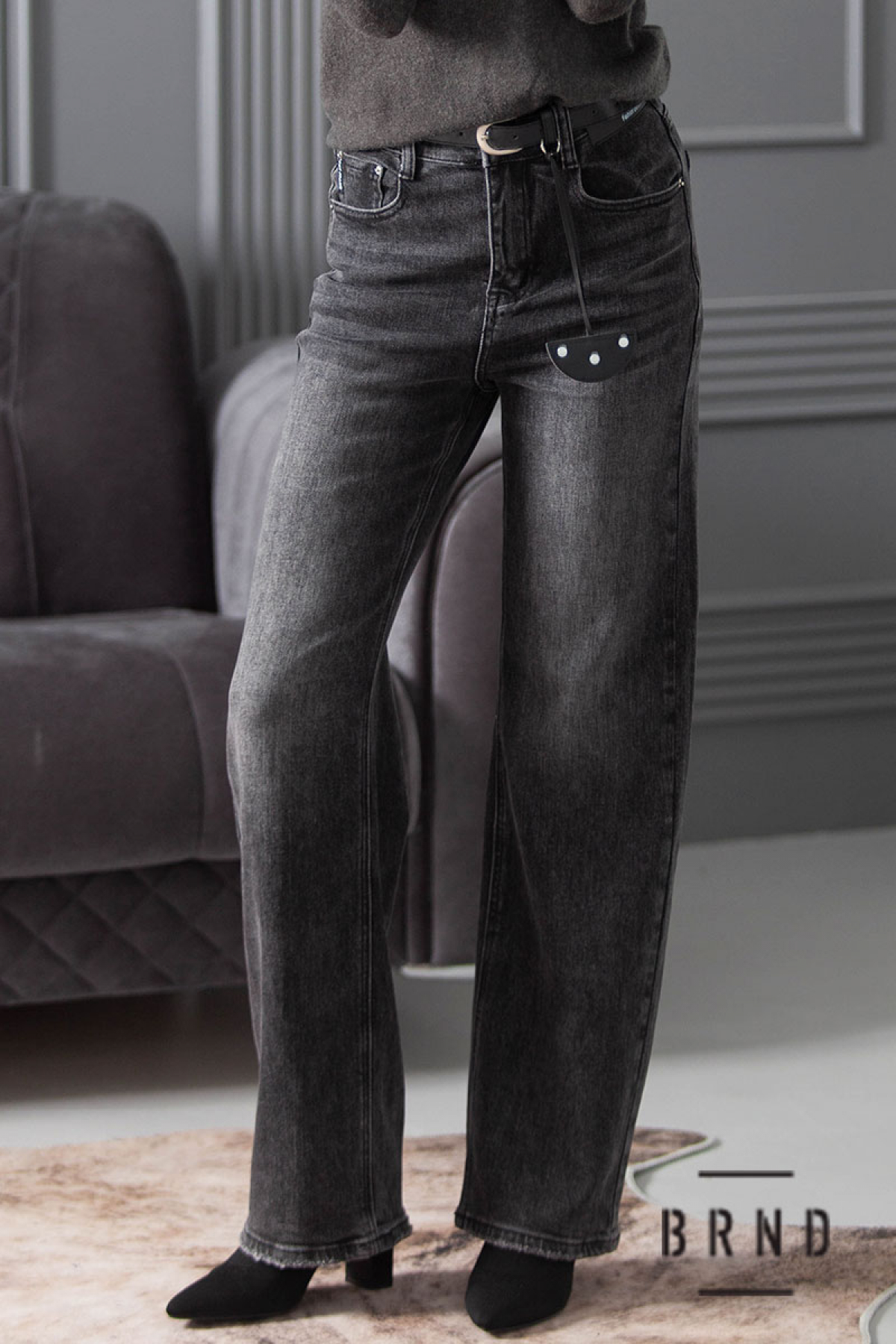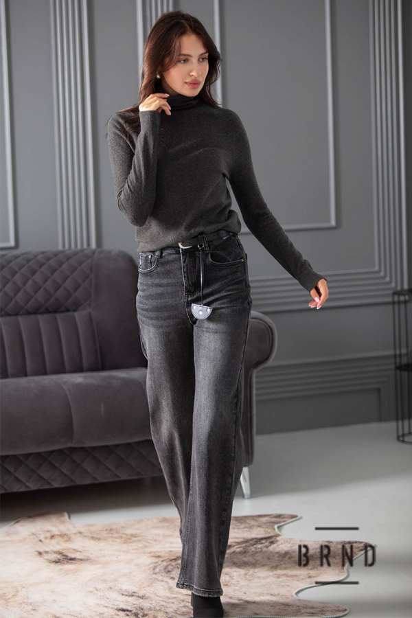 Джинси з ременем, прямі, пасок комбінований з гумовою стрічкою, посадка висока (Other Brand)