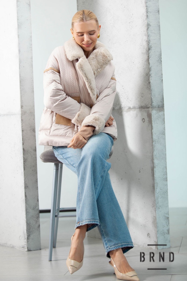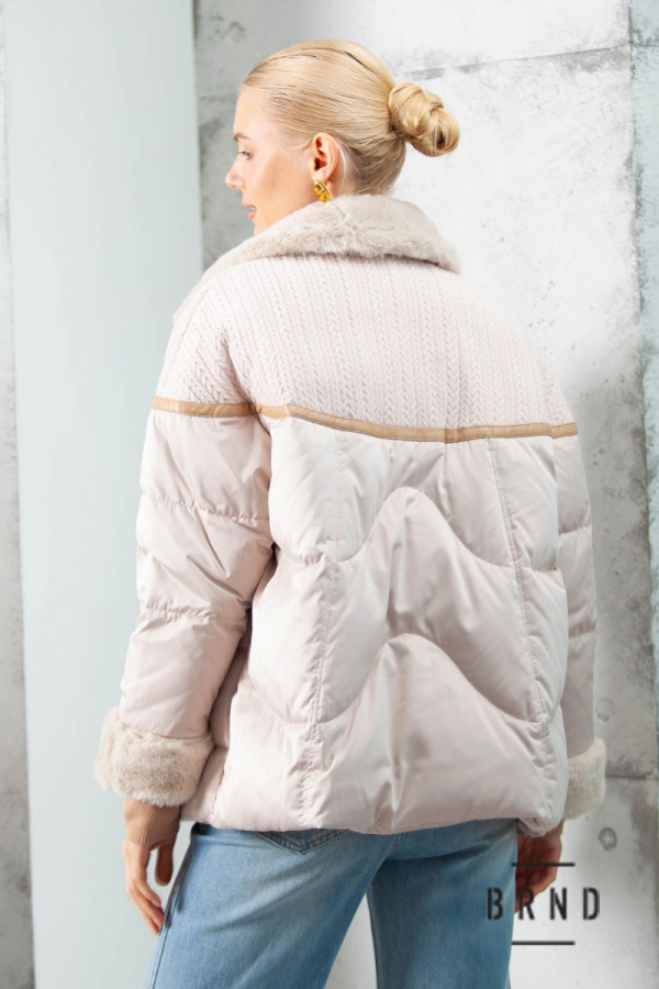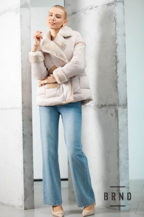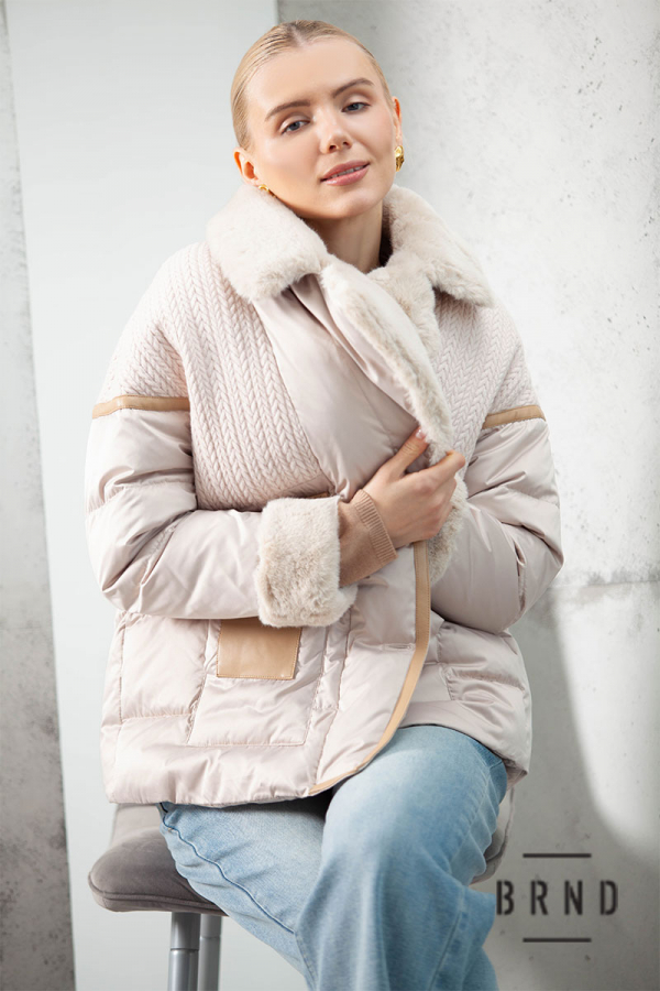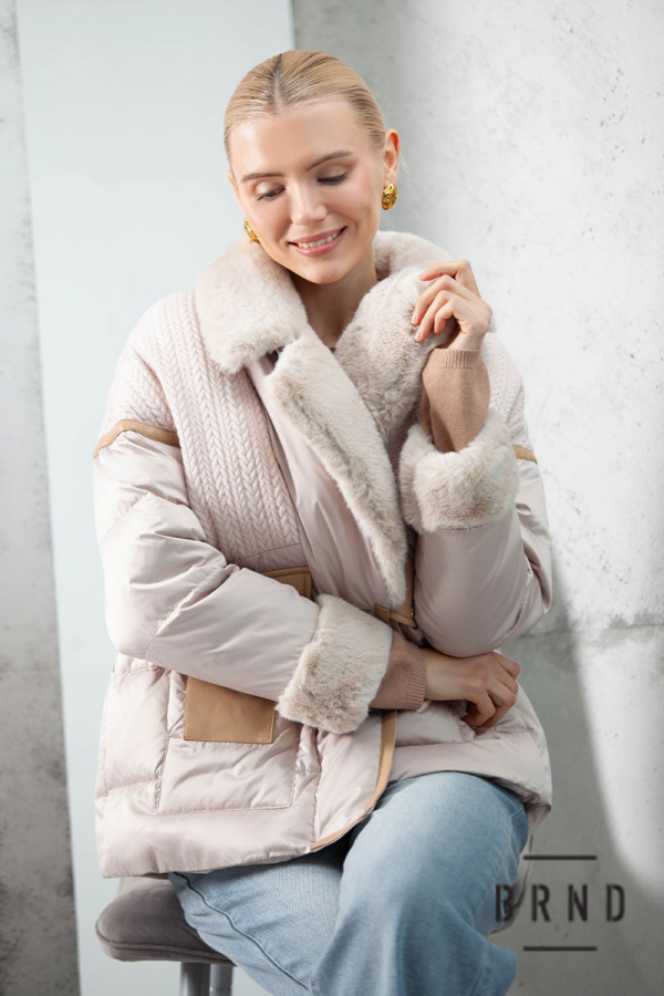 Куртка вільного крою, комбінована з трикотажем; декор на комірі та лацканах - штучне хутро (Other Brand)