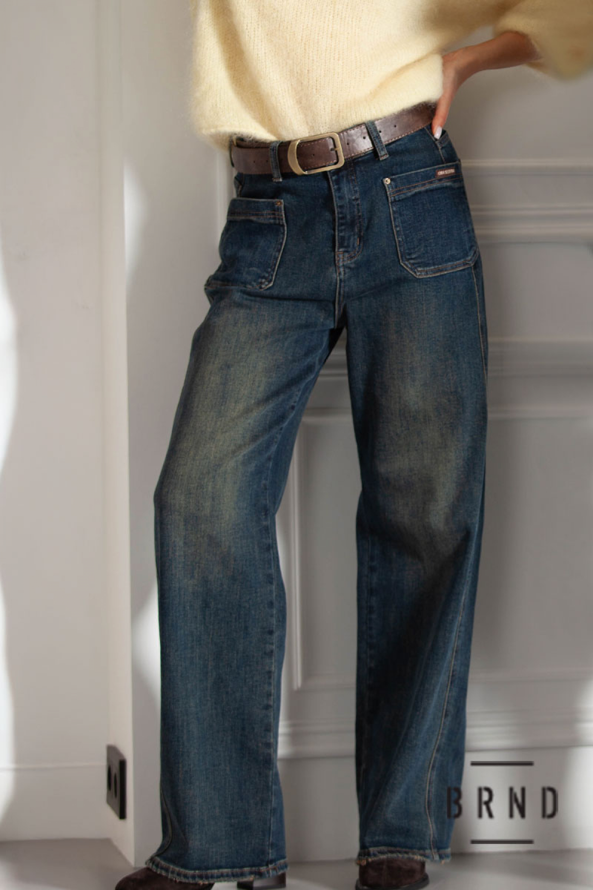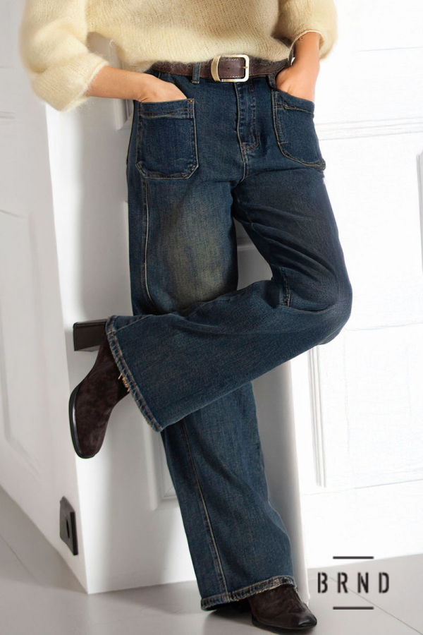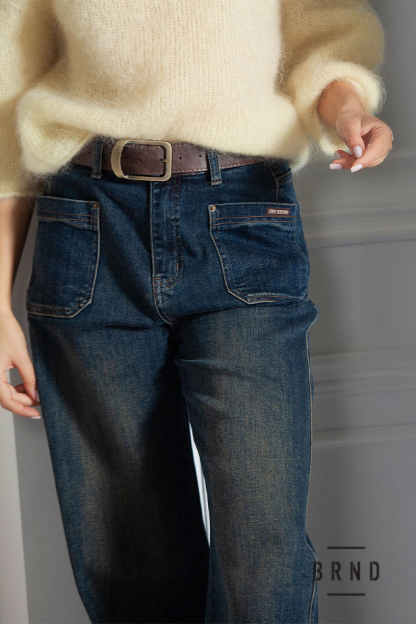 Джинси прямі, широкі з паском та накладними кишенями, посадка висока (Other Brand)